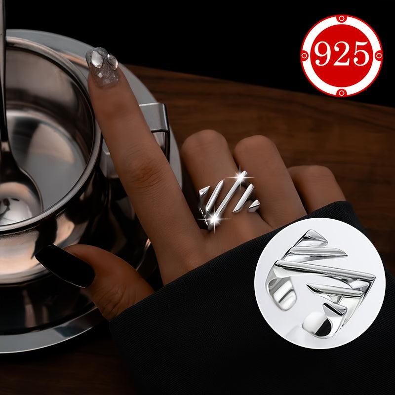 Dieser minimalistische quadratische Hohlring ist perfekt für den Zeigefinger. Es besteht aus 925 Silber mit niedriger Allergie und ist verstellbar und stilvoll.