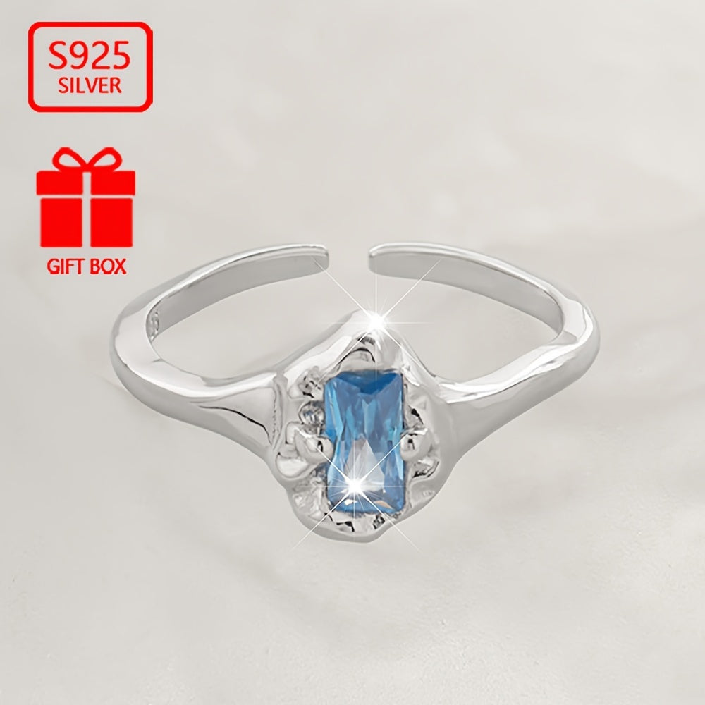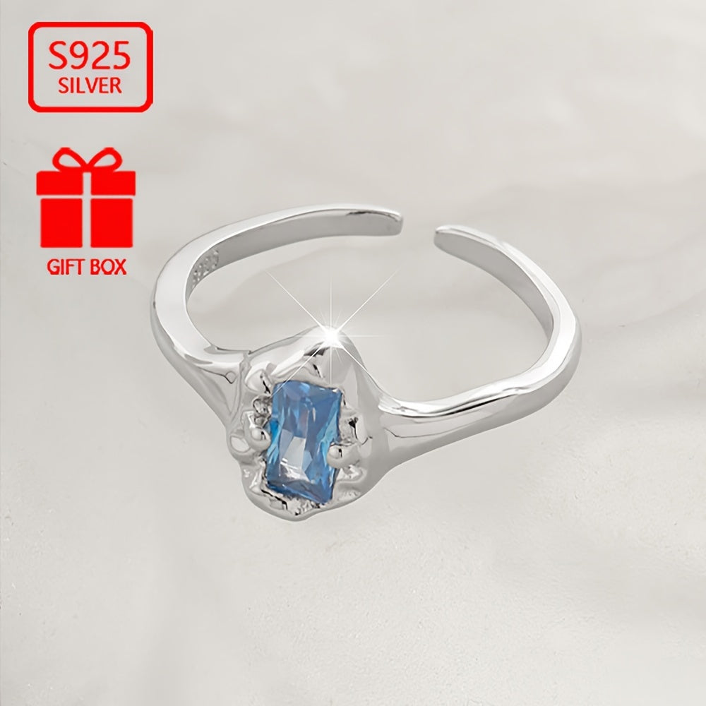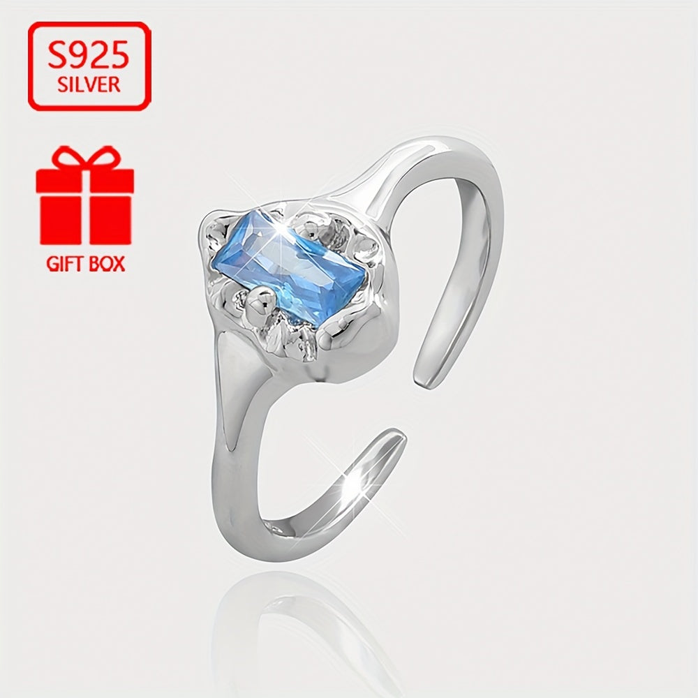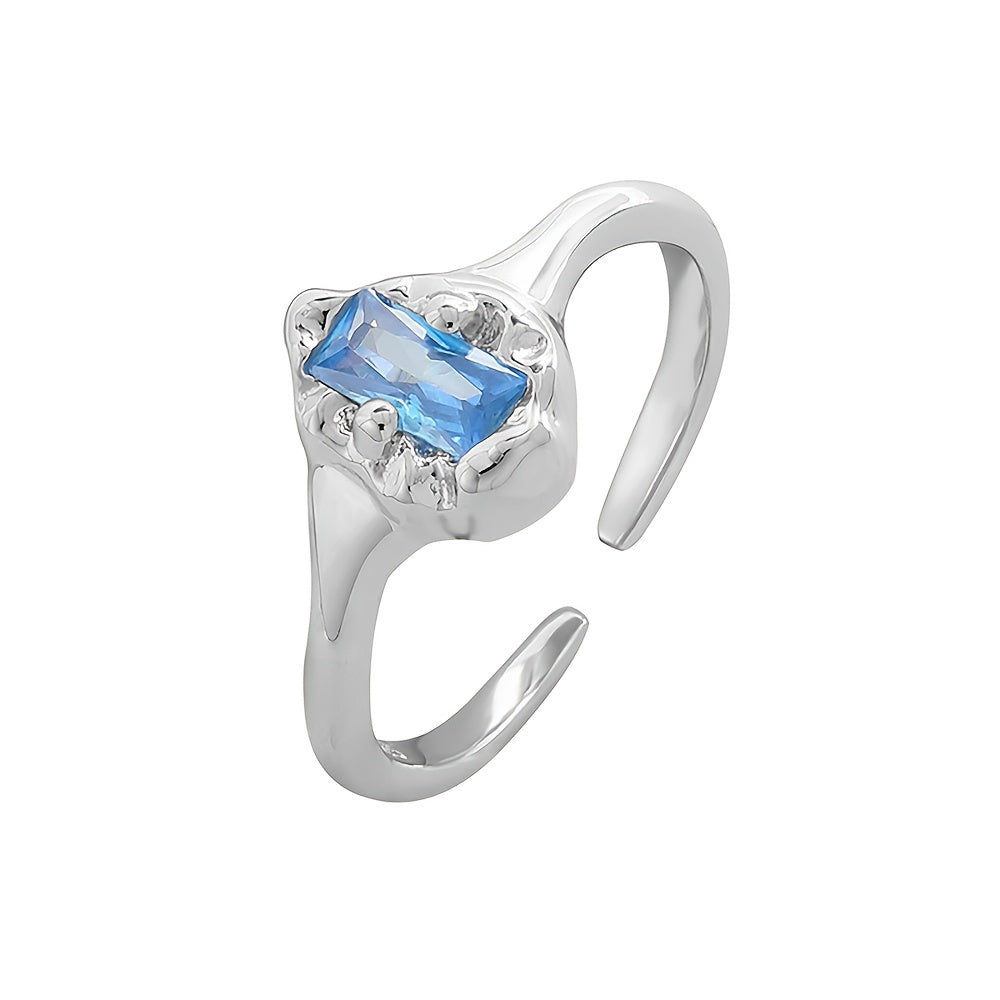 925 Silver Sea Zirconia Open Ring, Irregular Wrinkle Texture Band