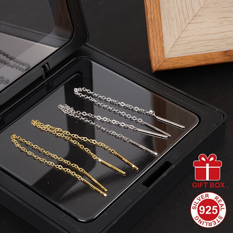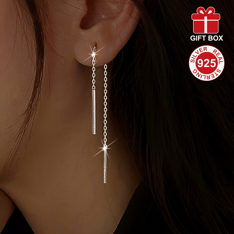 Diese Quastenohrringe verfügen über ein 925 reines silbriges Design mit einem O-förmigen Kettenquasten und doppelseitigen Nadeln. Sie sind modisch, sexy und perfekt für den täglichen Kleidung.