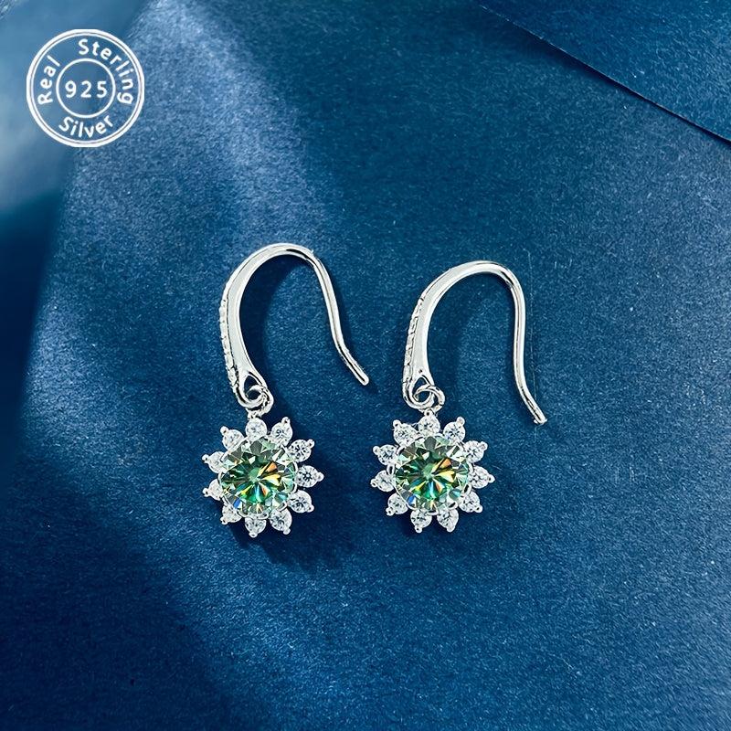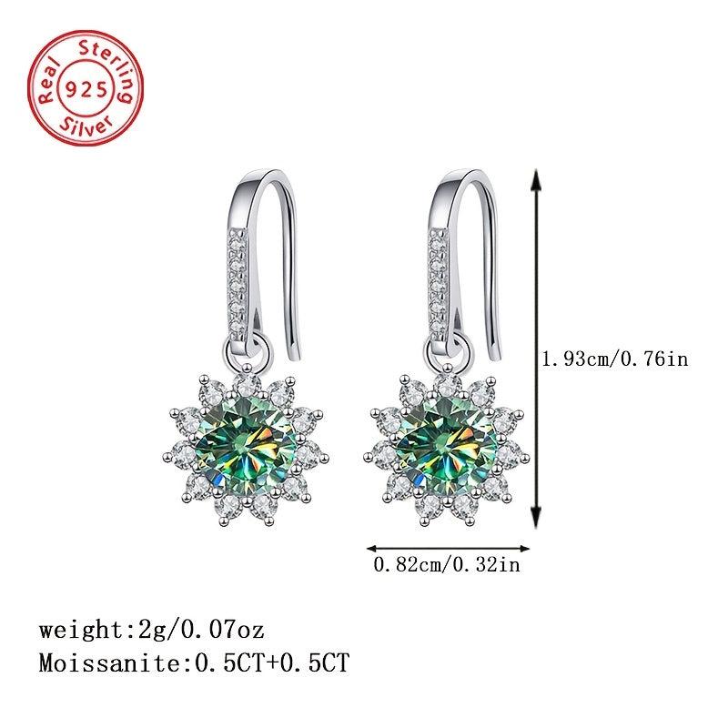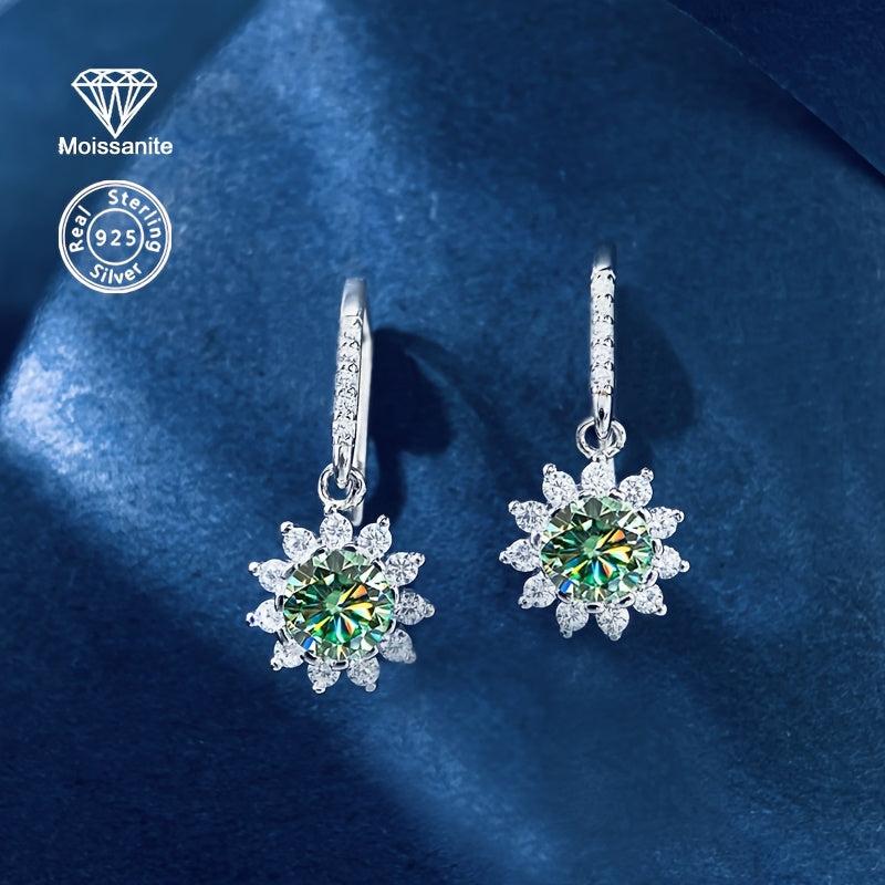 These elegant 925 sterling silver dangle earrings feature 1 carat moissanite stones. Perfect for all seasons and occasions, they are ideal for weddings, engagements, parties, and gifts.