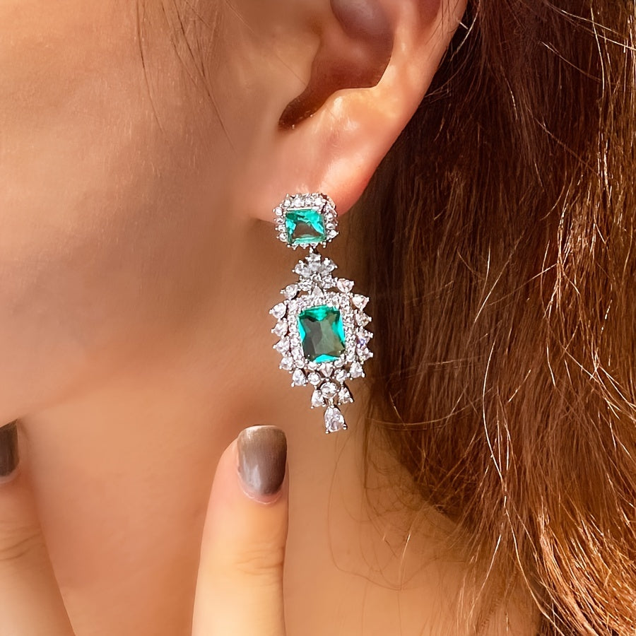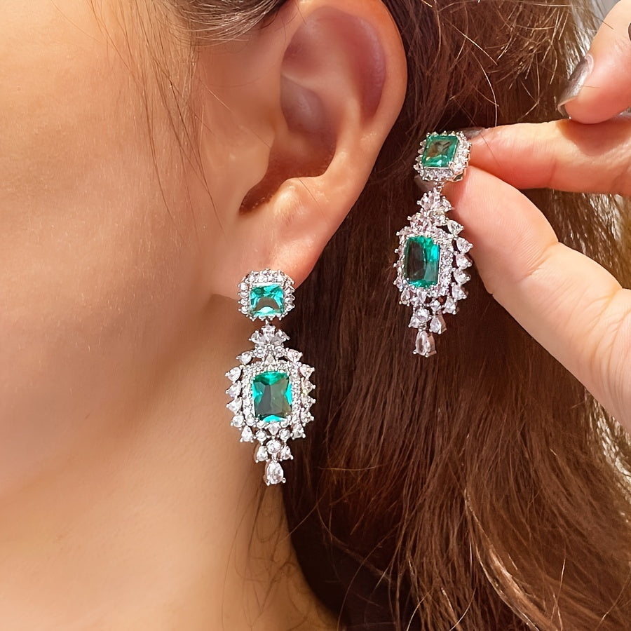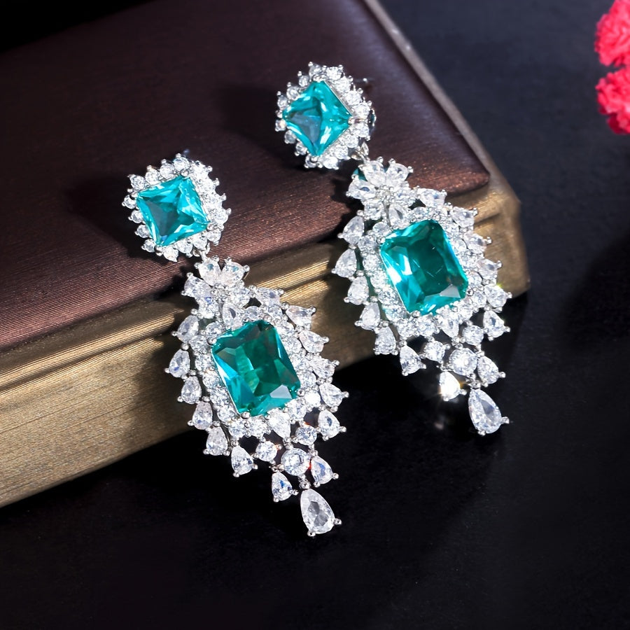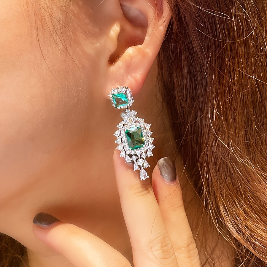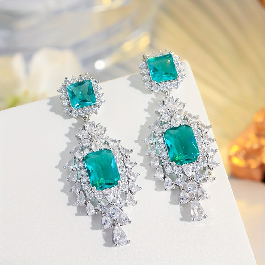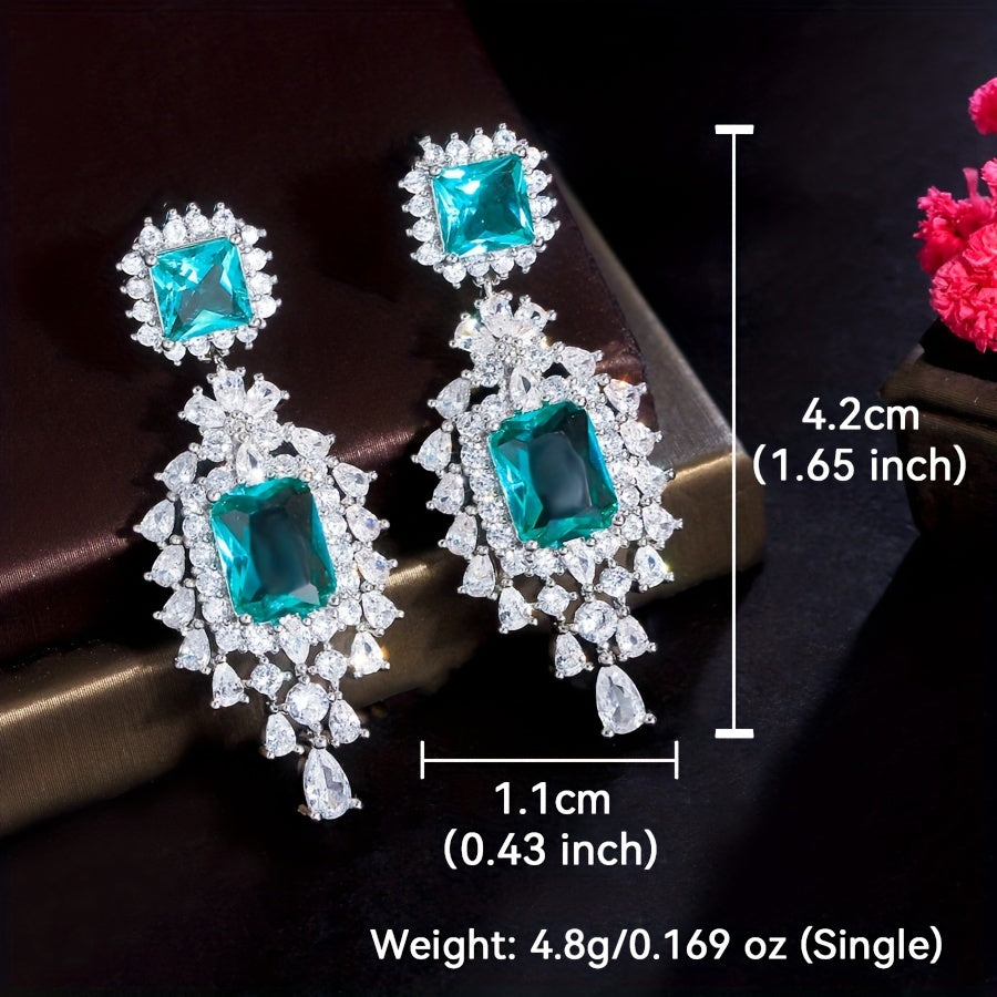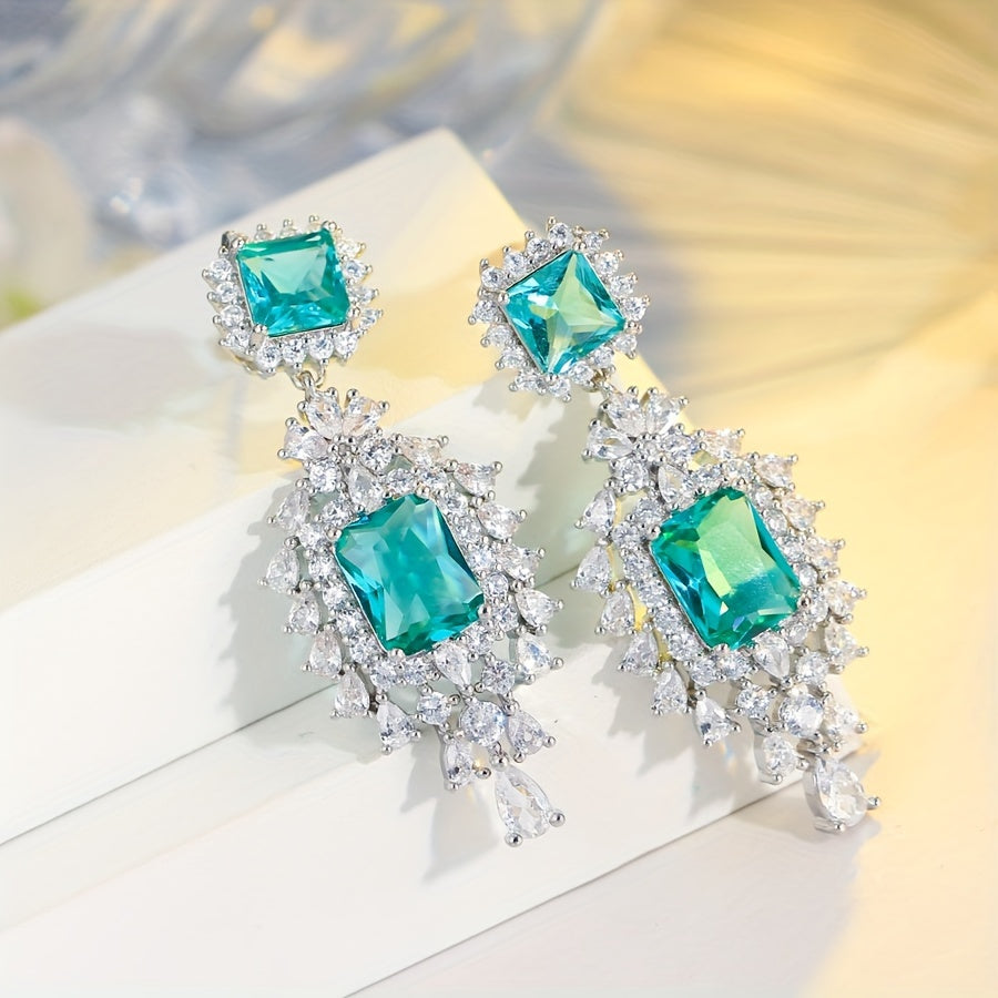 Diese eleganten Dangle -Ohrringe verfügen über quadratische Kubikzirkonia -Steine auf silbrigen 925 Sterling -Silberpfosten. Perfekt für Hochzeiten, Partys oder alltägliche Kleidung. Macht ein tolles Geschenk!