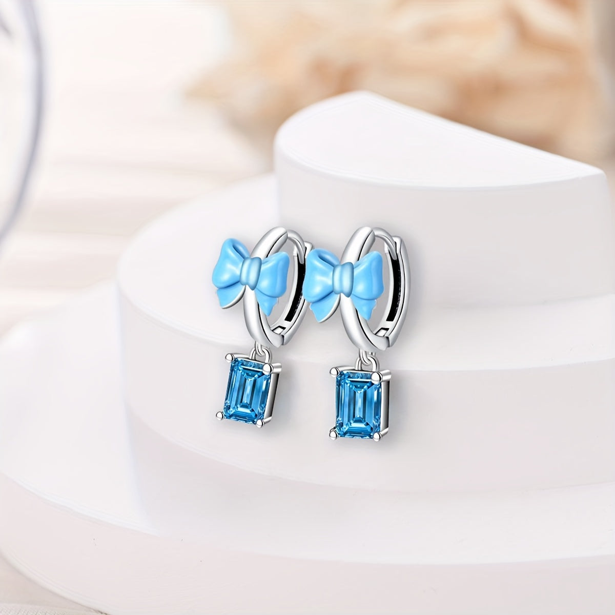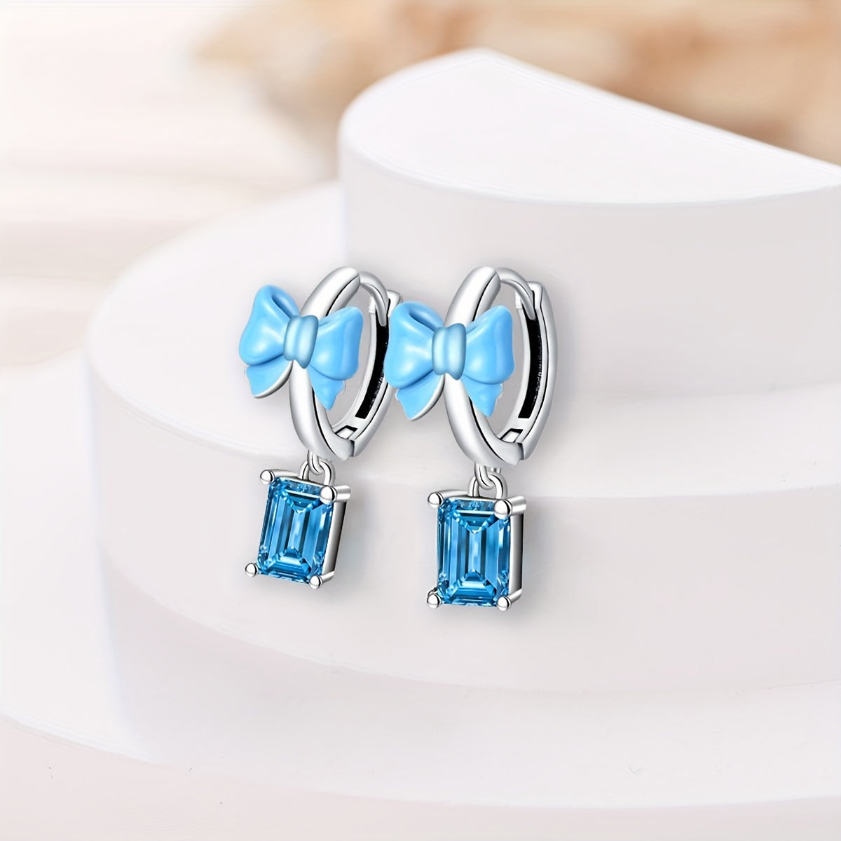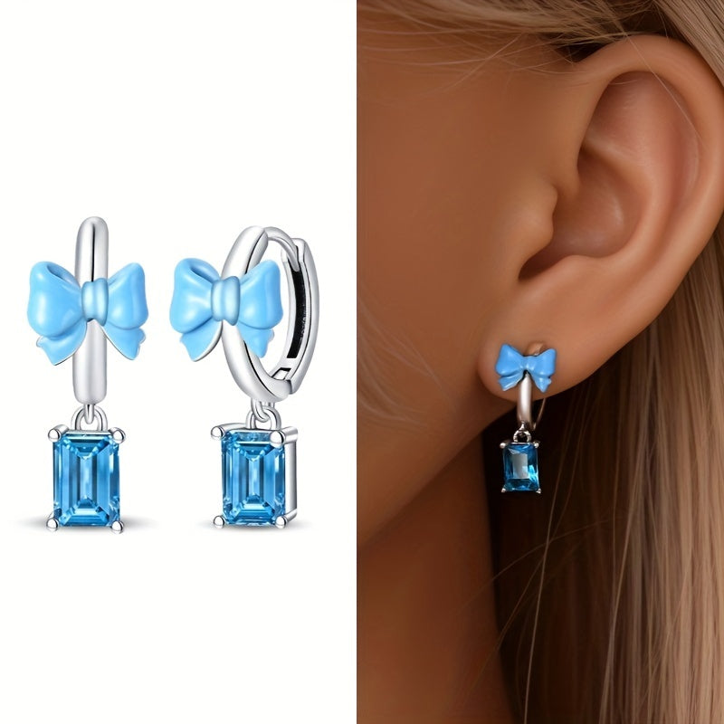 Diese atemberaubenden Ohrringe mit quadratischem Funkeln sind ein schickes Bugbanddesign aus 925 Sterlingsilber mit Emailledetails. Ein perfektes Schmuckgeschenk für Frauen und Mädchen.