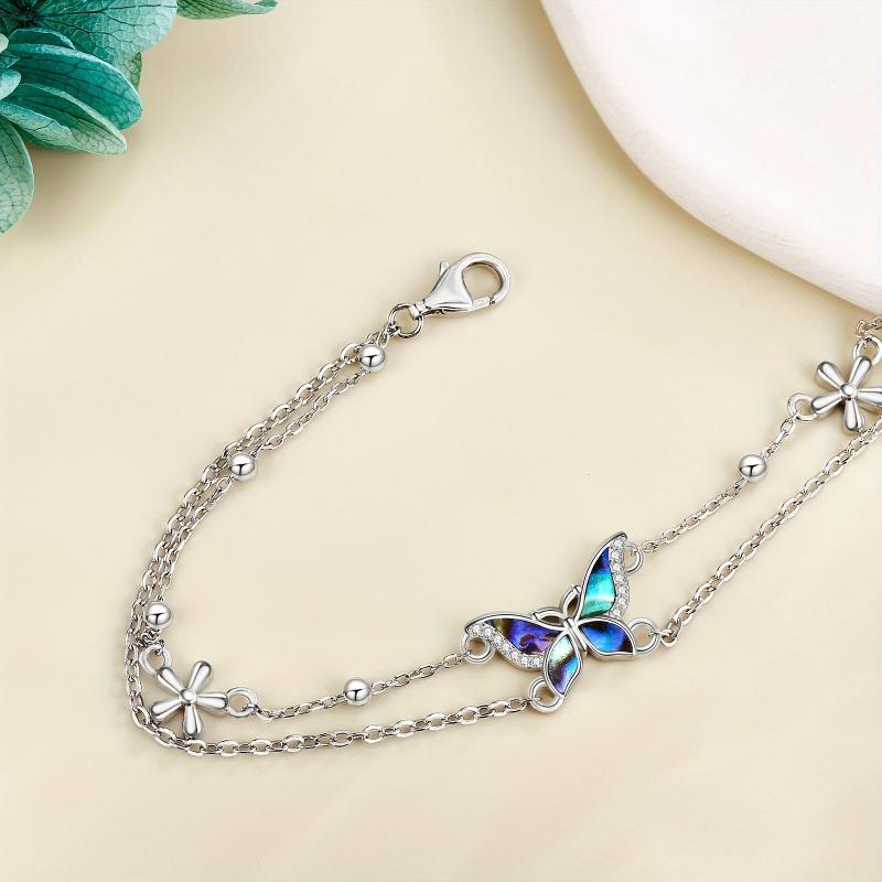 Dieses atemberaubende Schmetterlingsarmband besteht aus 925 Sterlingsilber mit einem Doppelschicht -Design. Es ist ein perfektes Geschenk für Frauen, die zarten und elegante Schmuck lieben.