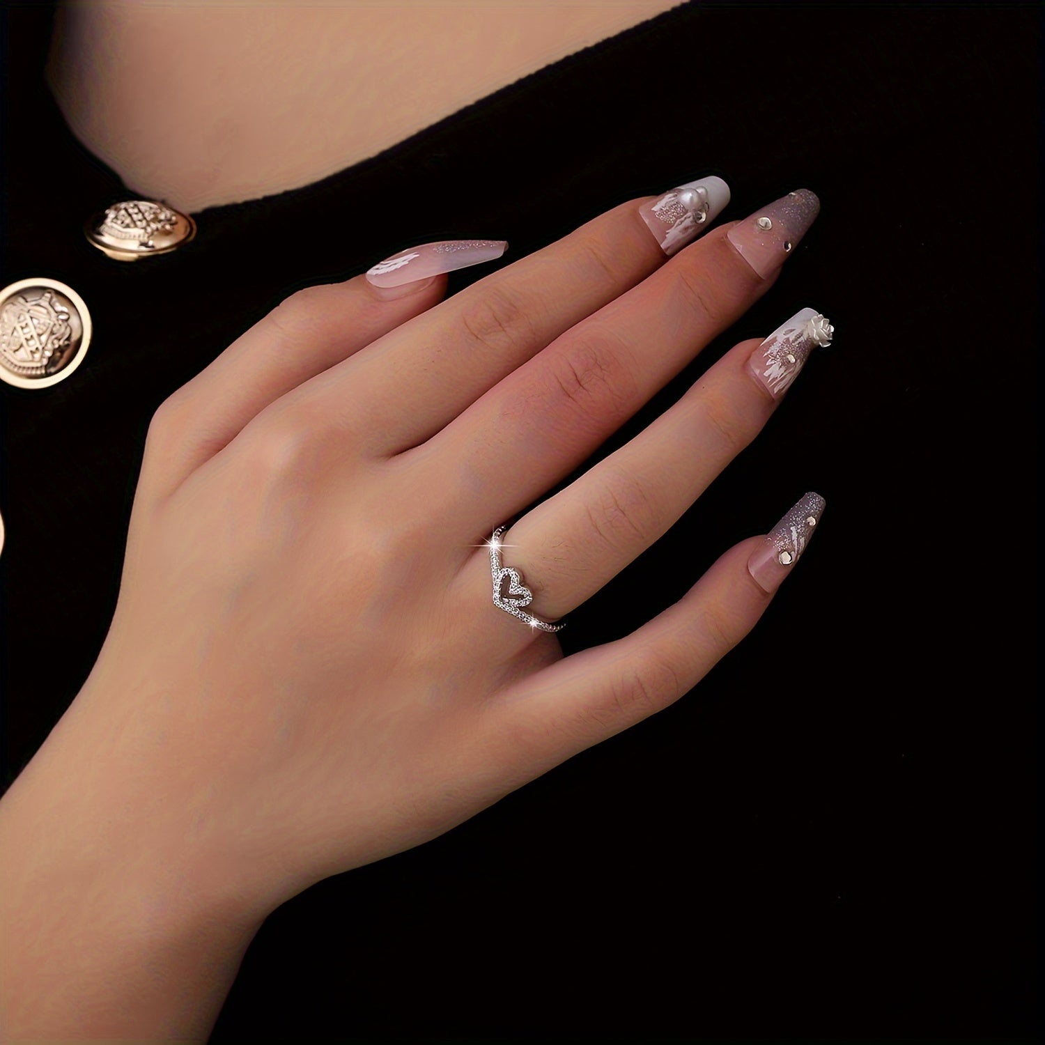 Dieser vielseitige silberne Ring verfügt über ein hohles Herz-Form-Design mit einem funkelnden Look. Perfektes Urlaubsgeschenk für Mädchen.