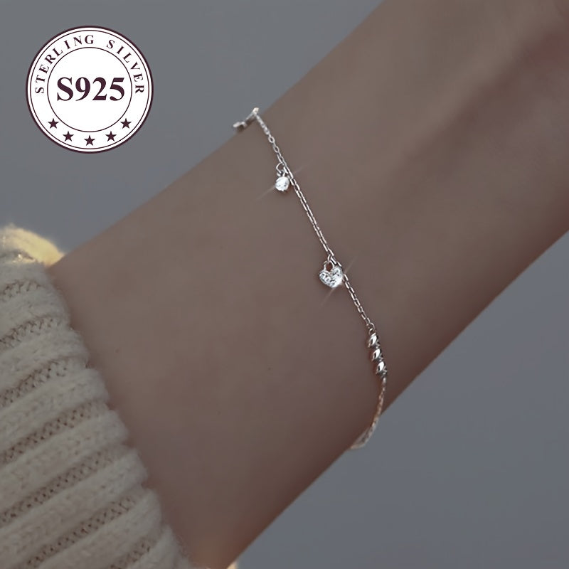 Dieses atemberaubende Armband besteht aus 925 Sterlingsilber und verfügt über einen Herzzauber mit funkelnden Zirkoniasteinen. Es ist hypoallergen und macht es ideal für empfindliche Haut. Das Armband eignet sich perfekt zum Schenken eines geliebten Menschen oder einer Mutter. Es kommt in einer anti-tnishischen Speicherbox.
