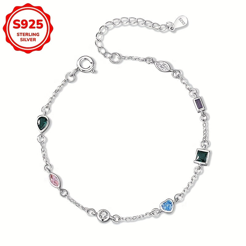 Elegantes Armband für Frauen mit einer lebendigen Reihe hochwertiger synthetischer Zirkoniasteine. Mit einem Gewicht von 2,2 Gramm ist dieses stilvolle 925 Silberarmband ein perfektes Geburtstagsgeschenk.
