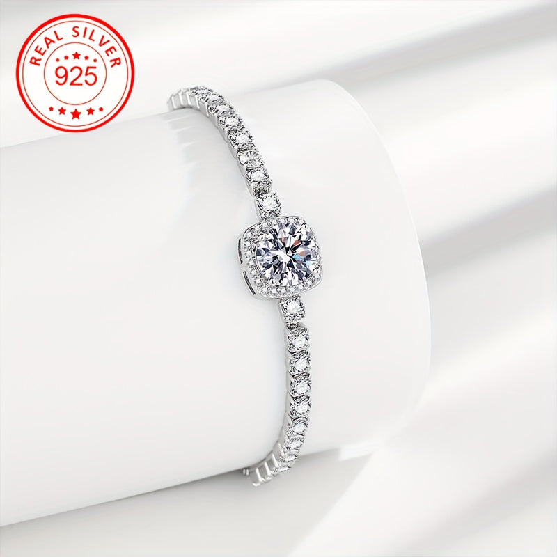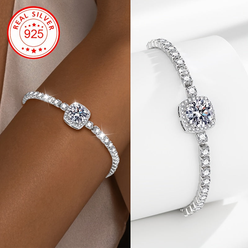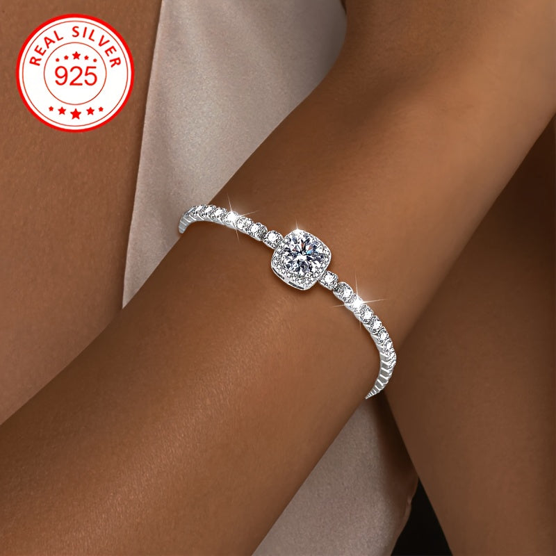 Elegantes und klassisches Tennisarmband für Frauen mit schillernden Kubikzirkoniensteinen in hochwertigem S925 Silber. Einstellbare Länge mit teleskopischen Perlen für eine komfortable Passform.