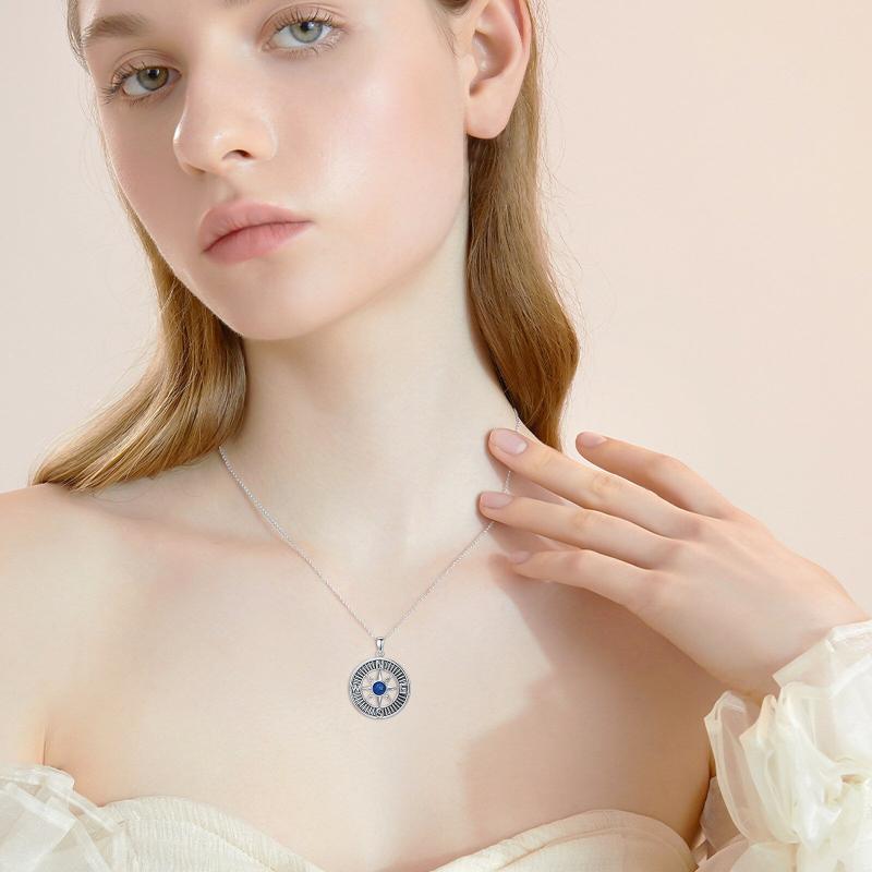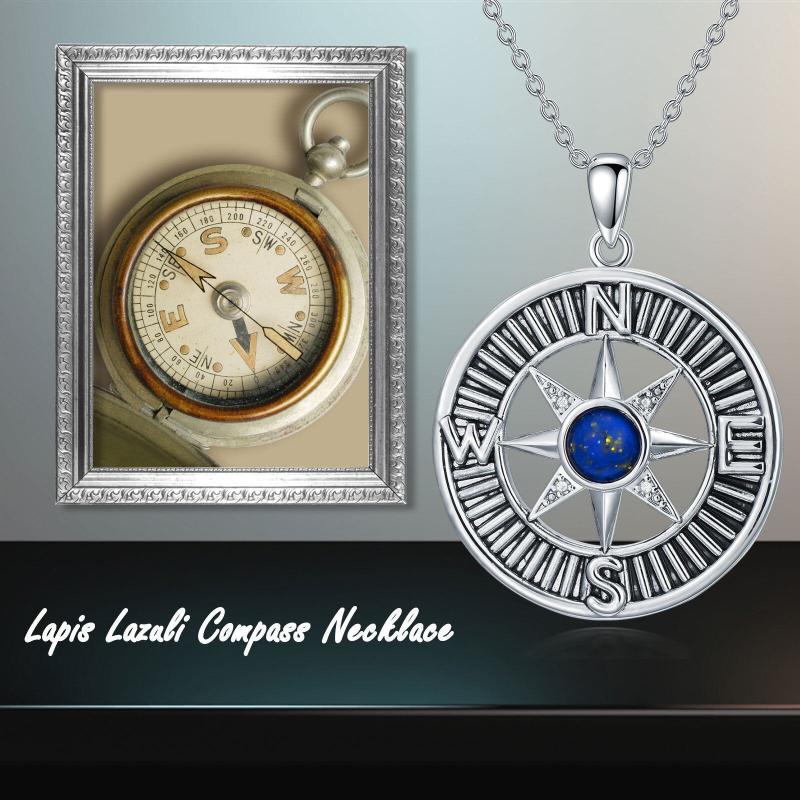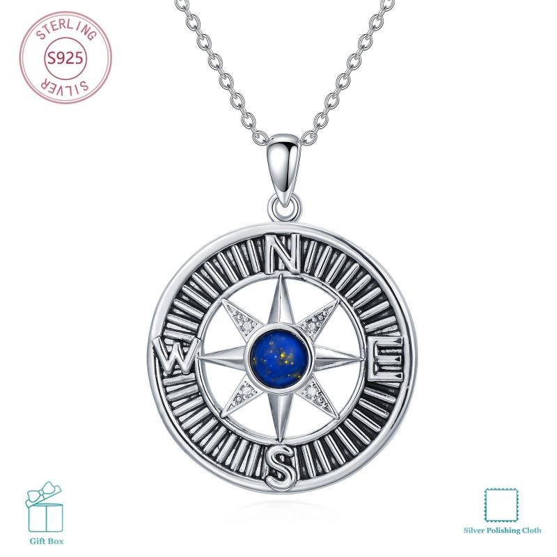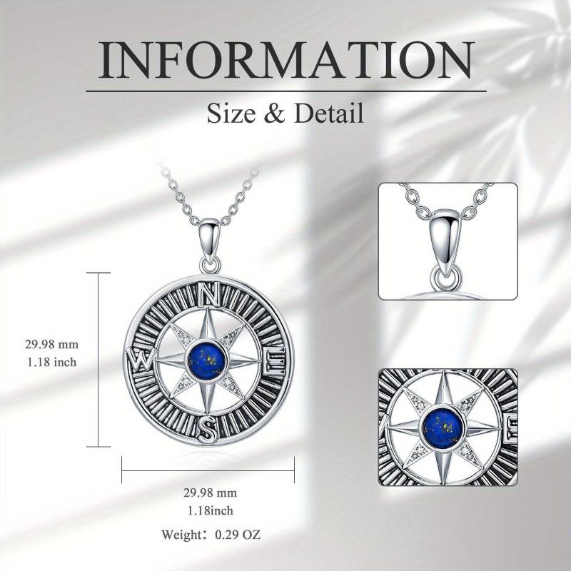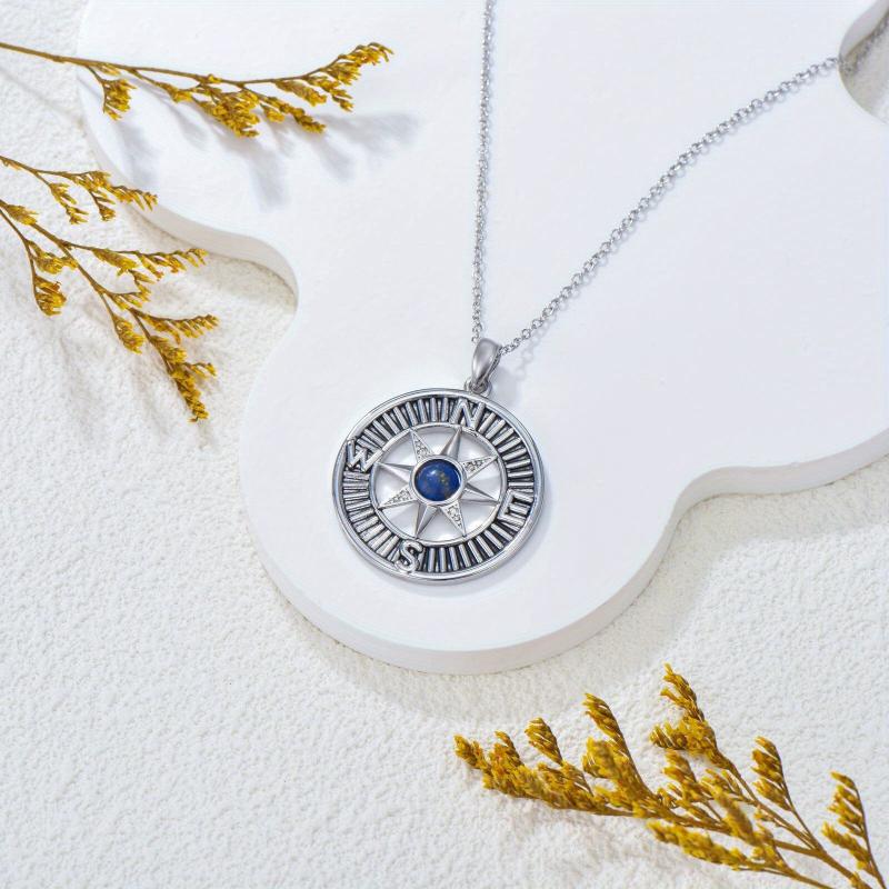 Diese schöne Kompass -Halskette verfügt über einen synthetischen Lapis -Lazuli -Kompassanhänger auf einer reinen Silberkette. Es macht ein nachdenkliches und inspirierendes Geschenk für Frauen.