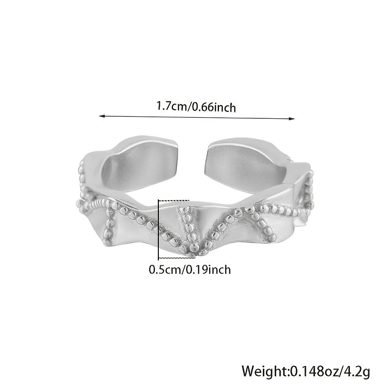 Dieser offene Ring von Sterling Silver verfügt über ein gedrehtes Perlenstil -Design, das ihn ideal für Partys und Bankette ist. Es wiegt ungefähr 4,2 g und ist ein perfektes Geschenk für Frauen.