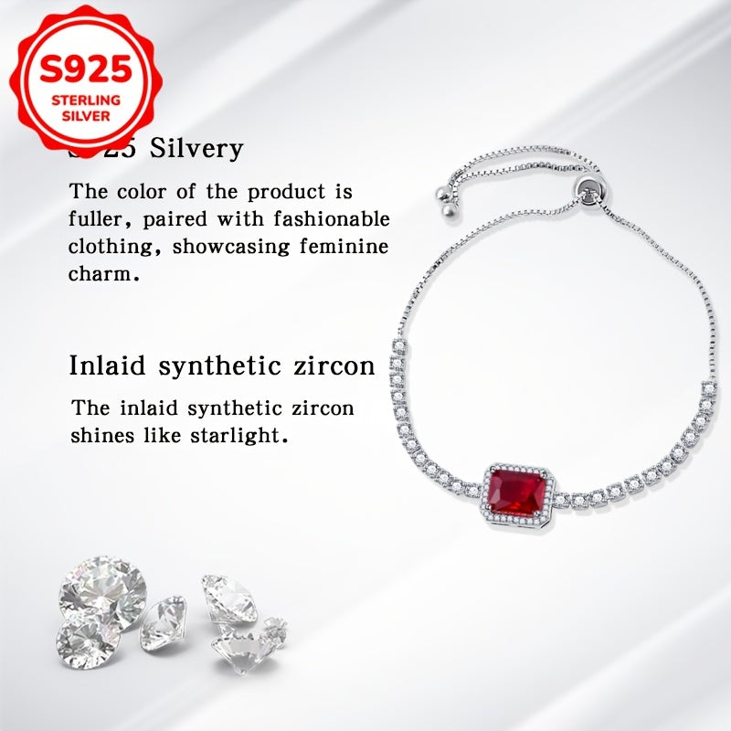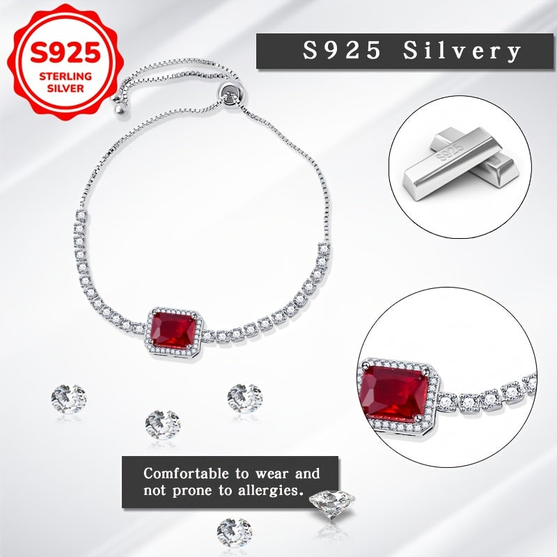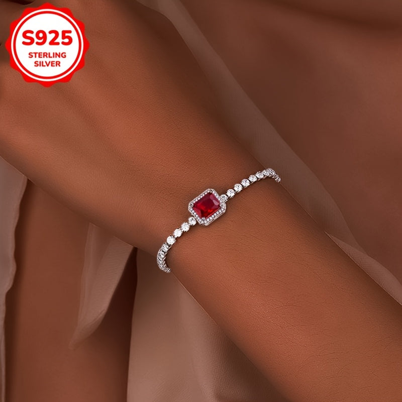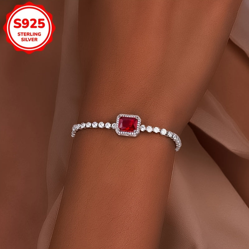 Erhöhen Sie Ihren Stil mit diesem schicken Frauenarmband mit einem quadratischen roten Zirkonia -Inlay auf 925 Silber. Mit einem Gewicht von 4,6 Gramm ist dieses vielseitige Stück perfekt für den täglichen Abnutzen.