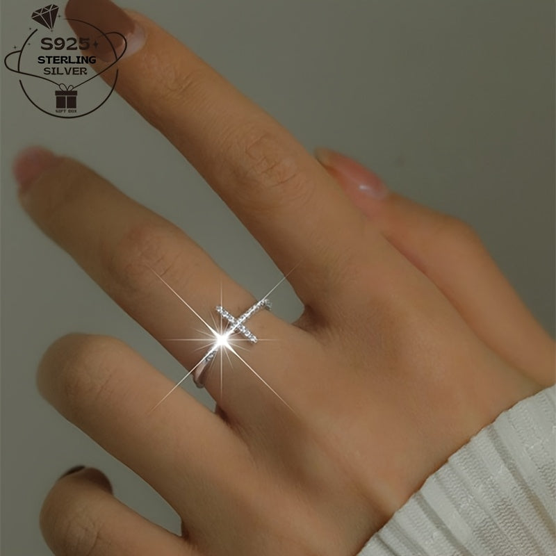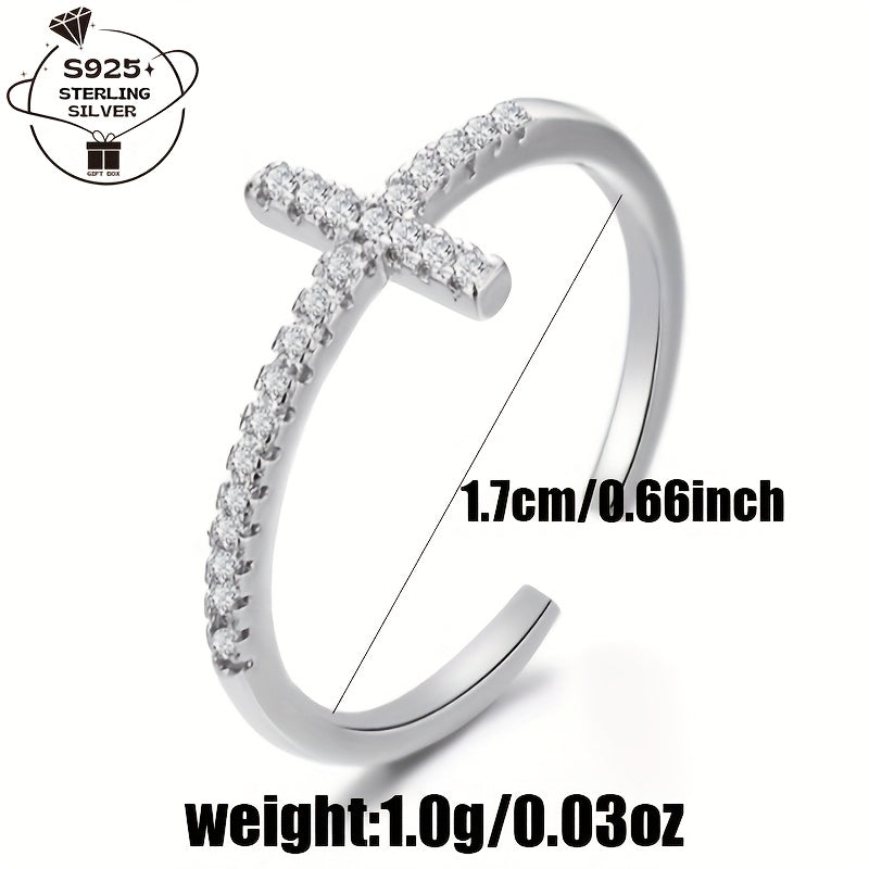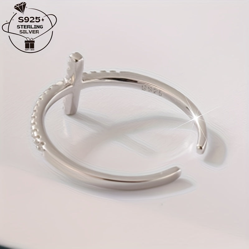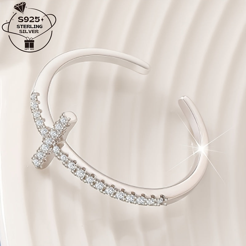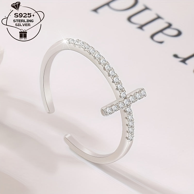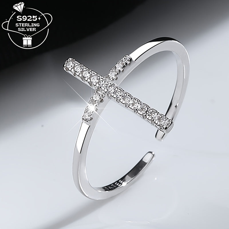 Einstellbarer Sterling -Silber -Kreuzring mit kubischer Zirkonia -Inlay