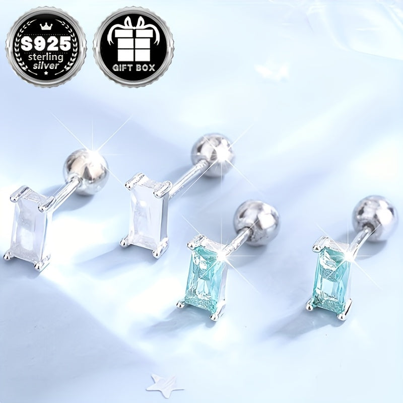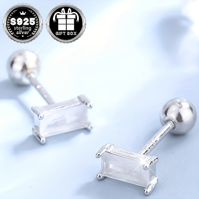 Diese klassischen Silberohrringe verfügen über synthetische Zirkonia -Inlays für einen Hauch von Eleganz. Ideal für tägliche Verschleiß, Partys und Bankette.