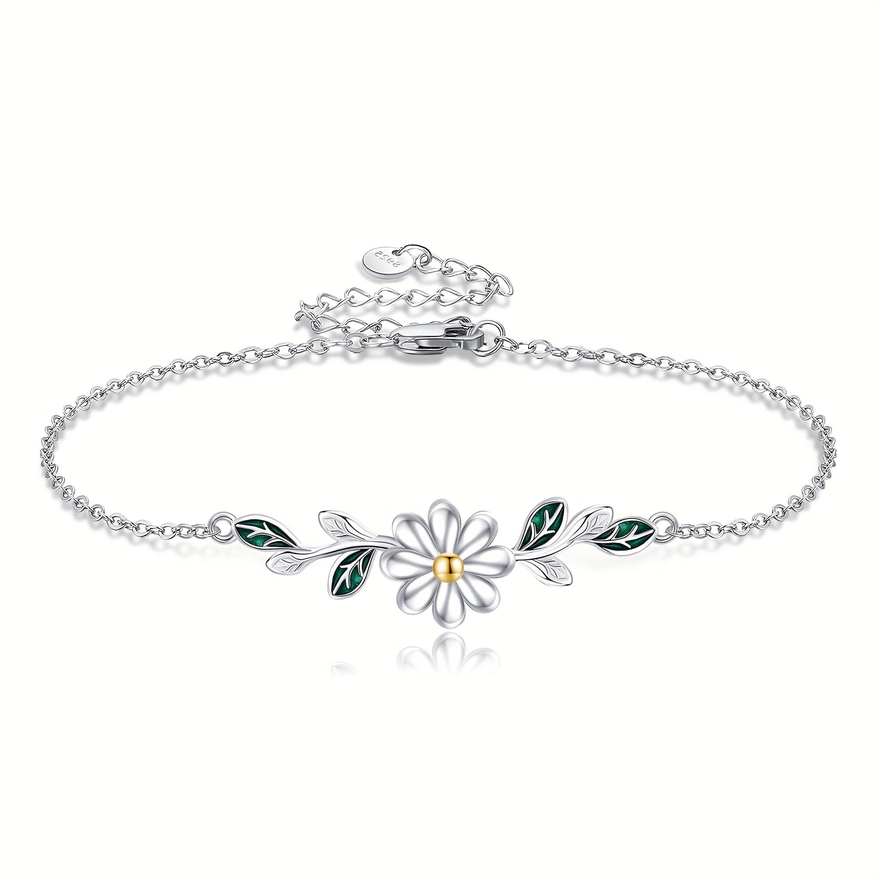 Dieses charmante Gänseblümmel -Armband stammt aus 925 Sterlingsilber mit zarten Blatt- und Blumenakzenten, perfekt für Frauen, Mütter und Frauen. Präsentieren Sie Ihre Liebe zur Natur mit diesem eleganten Schmuckstück.