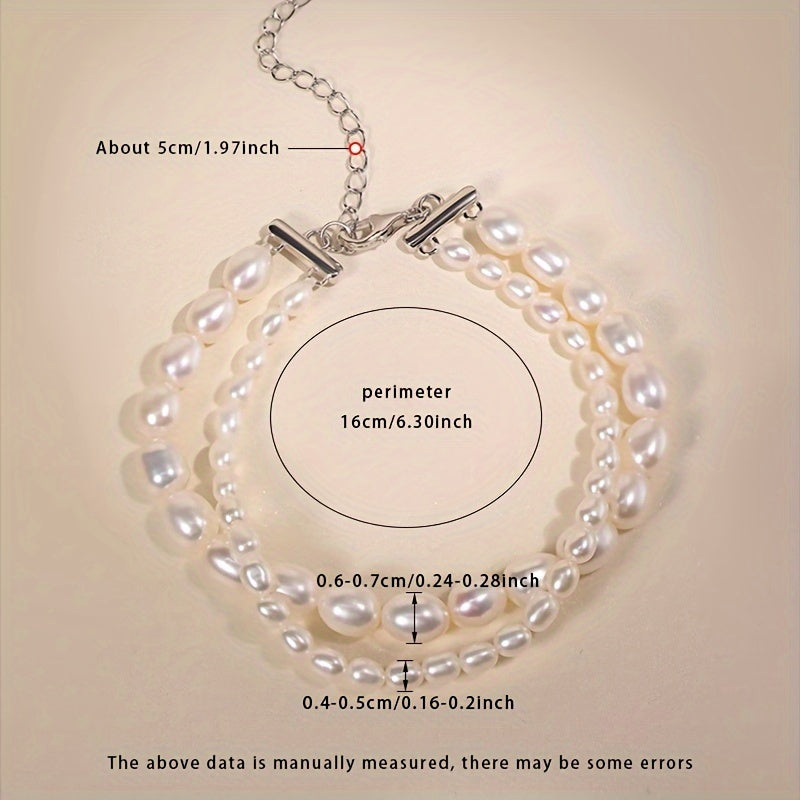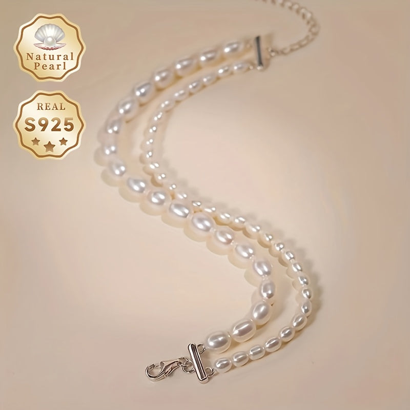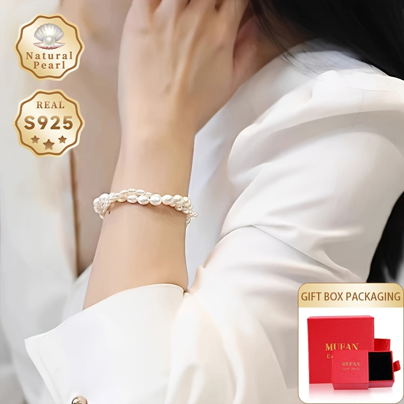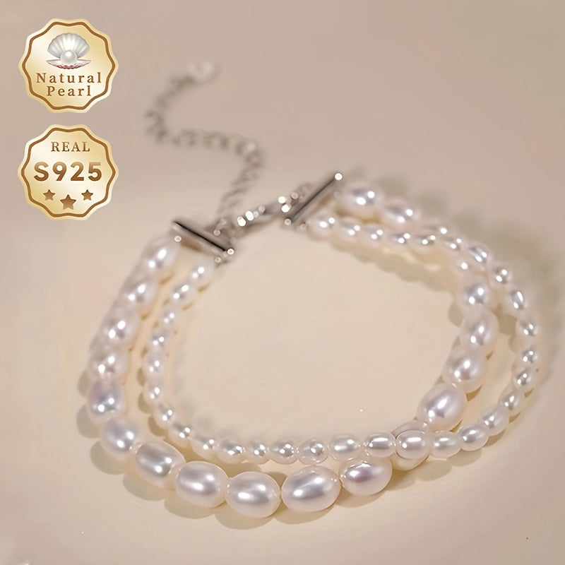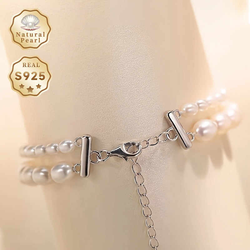 Elegant women's bracelet featuring natural freshwater pearls in rice shapes. Crafted with S925 silver for a timeless look.