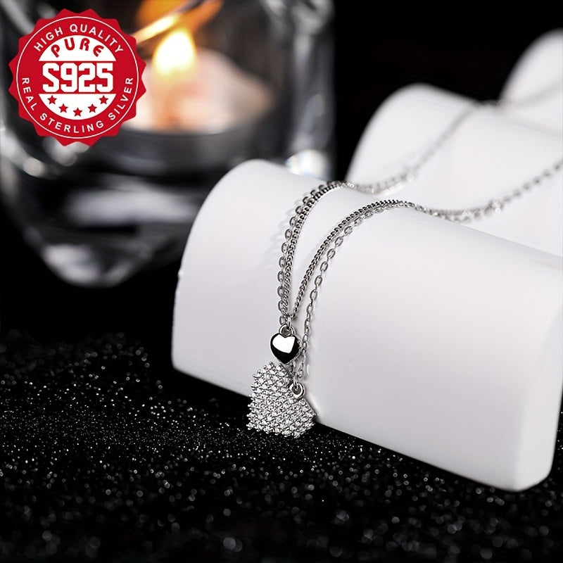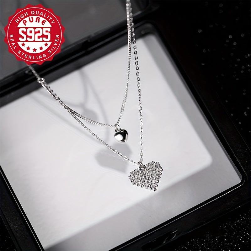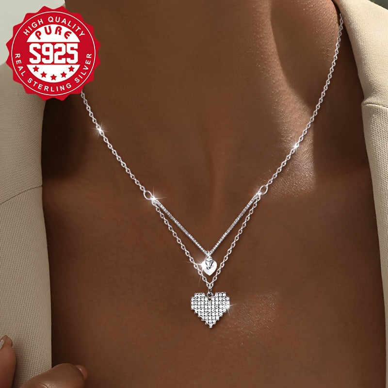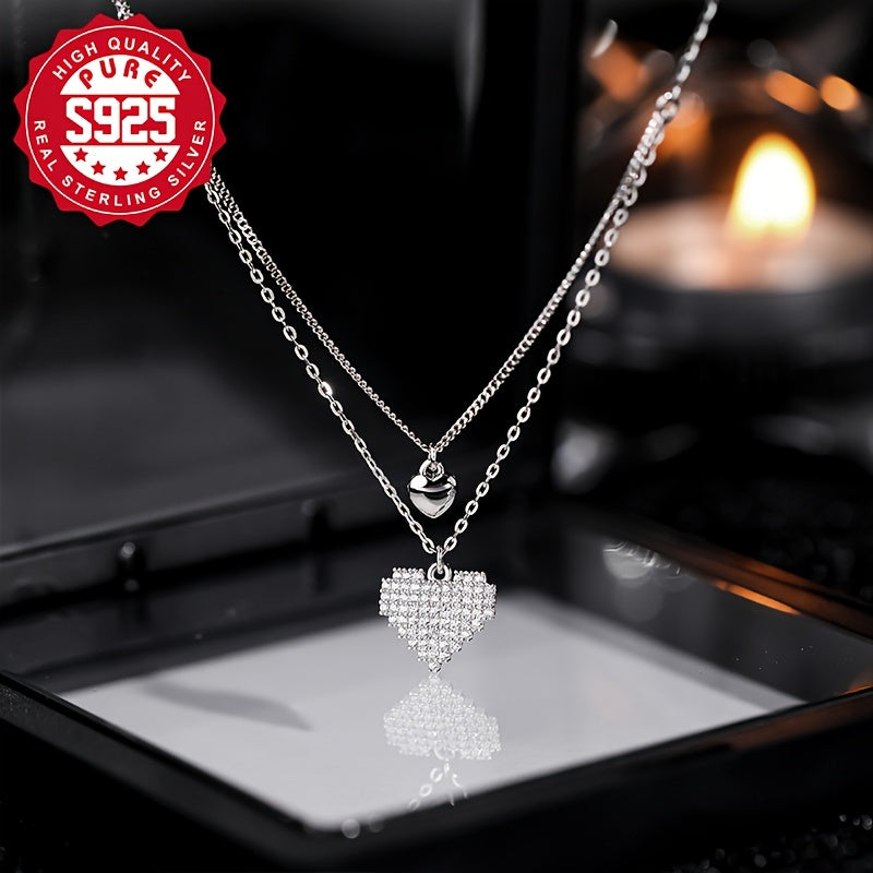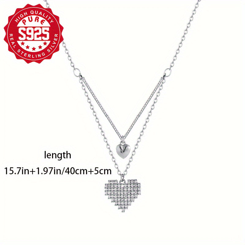 Diese doppelschichtige Pixel-Liebeskette wird aus S925-Silber mit synthetischer Zirkonia-Blingbling hergestellt. Es ist ein perfektes Accessoire für alle Jahreszeiten.