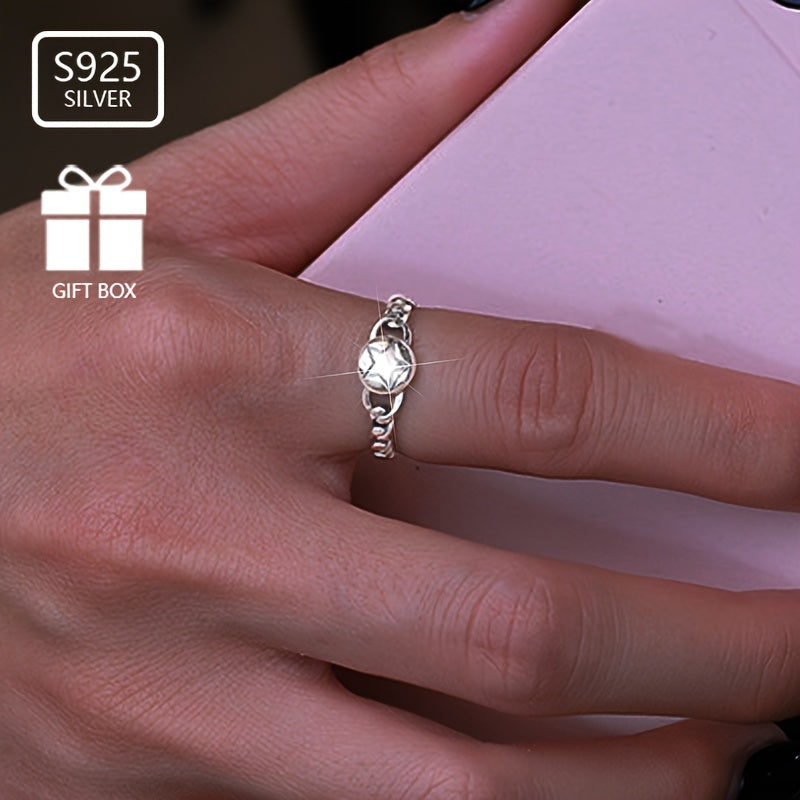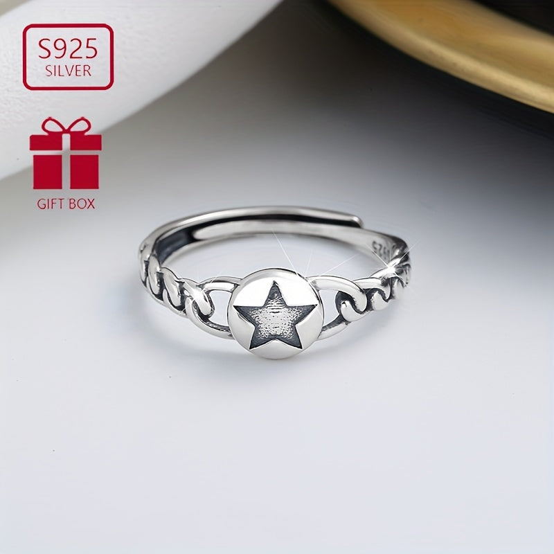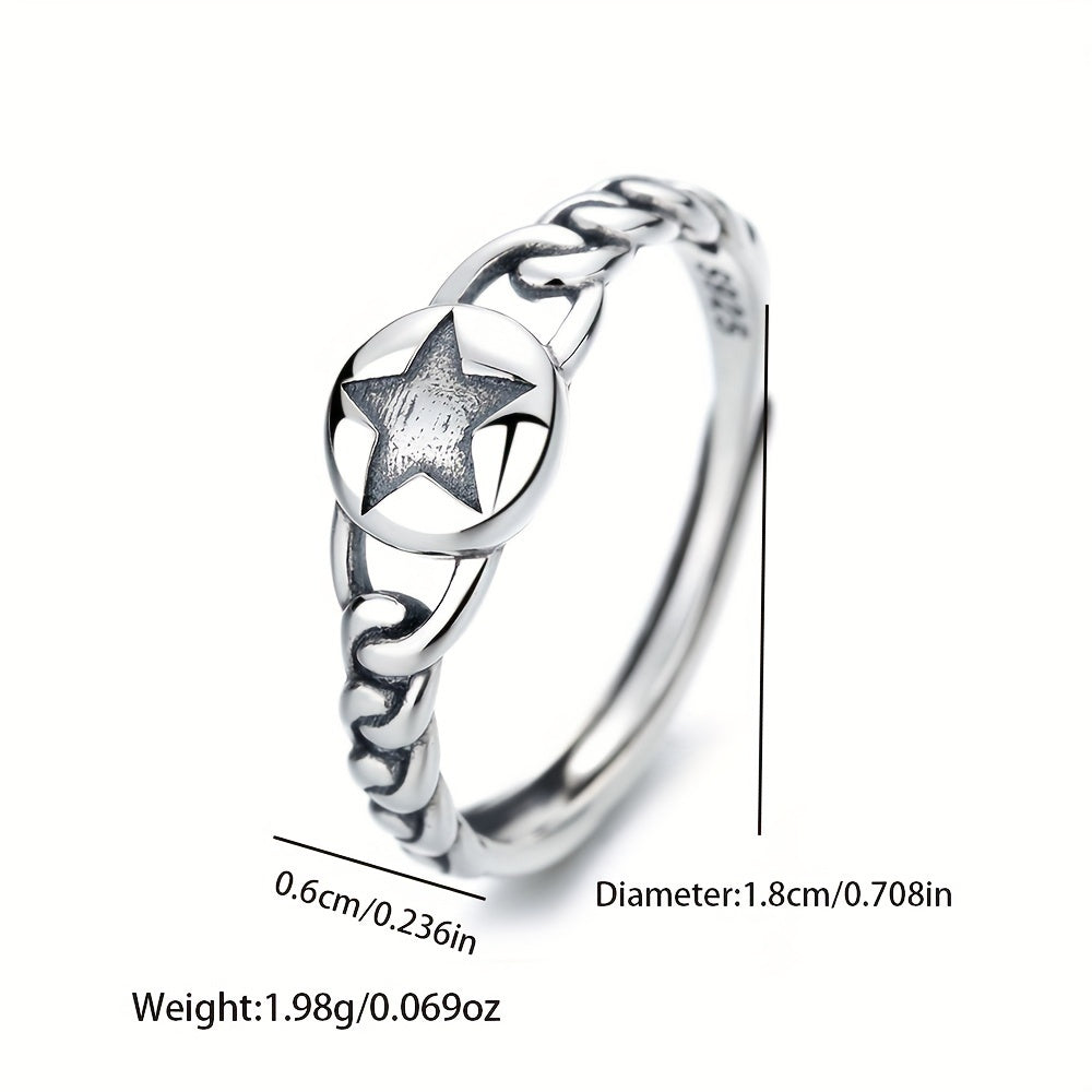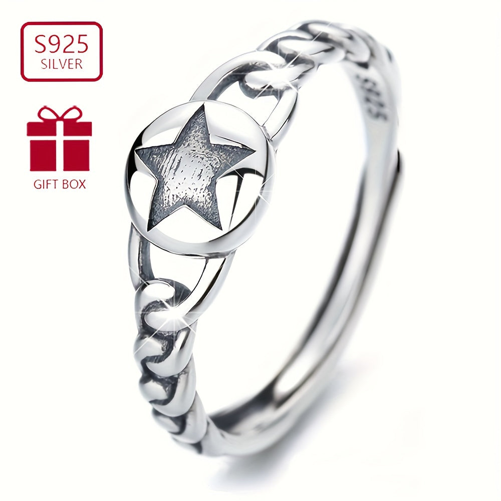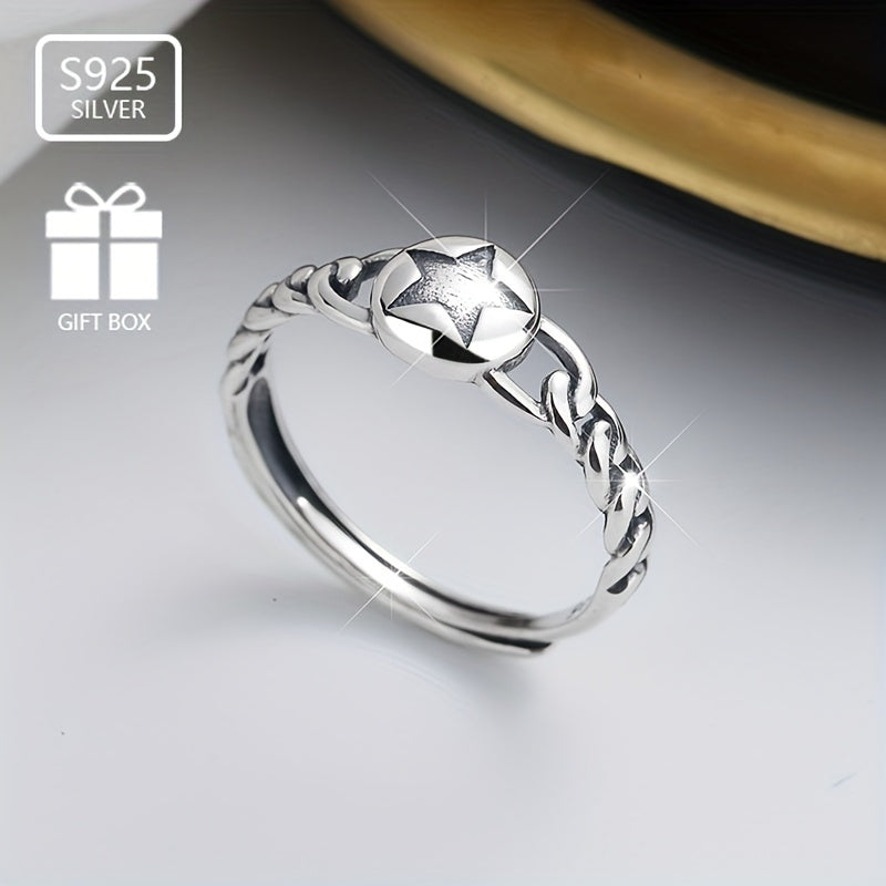 S925 Silvery Hemp Rope Braided Five-pointed Star Ring Gift Low Allergy