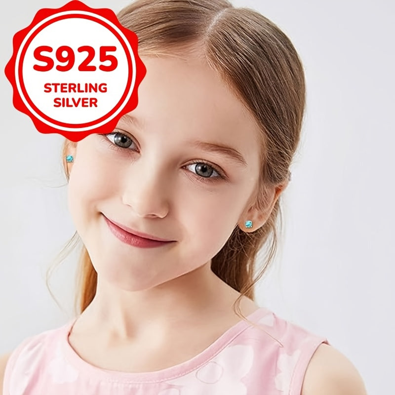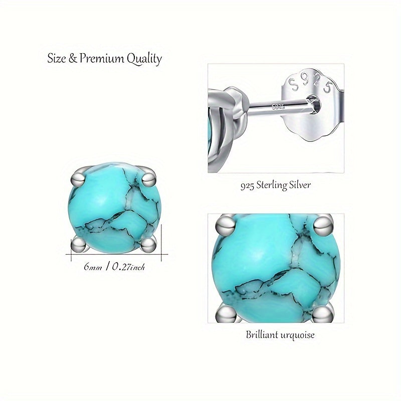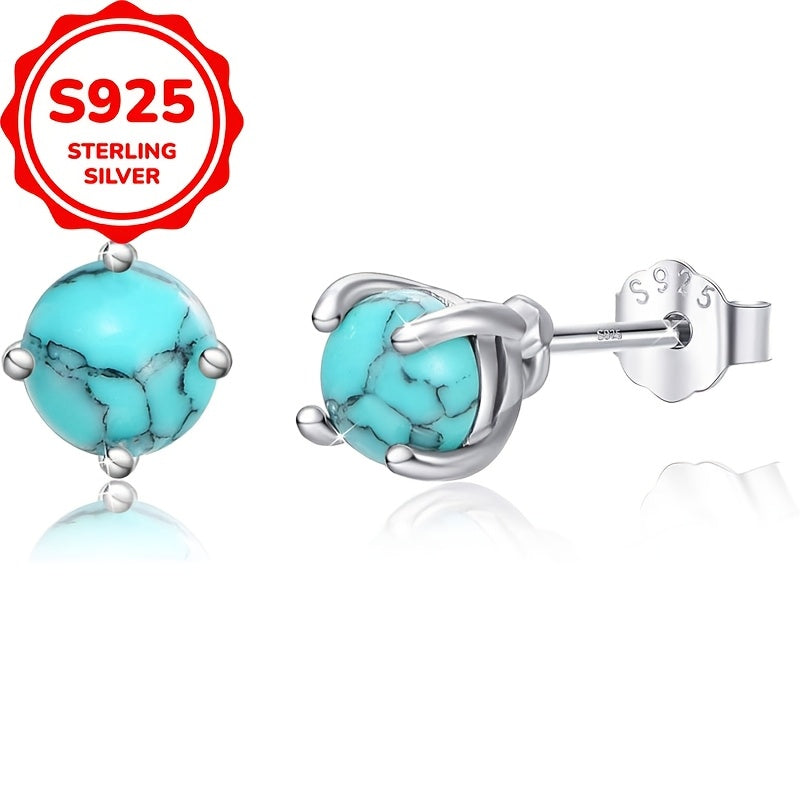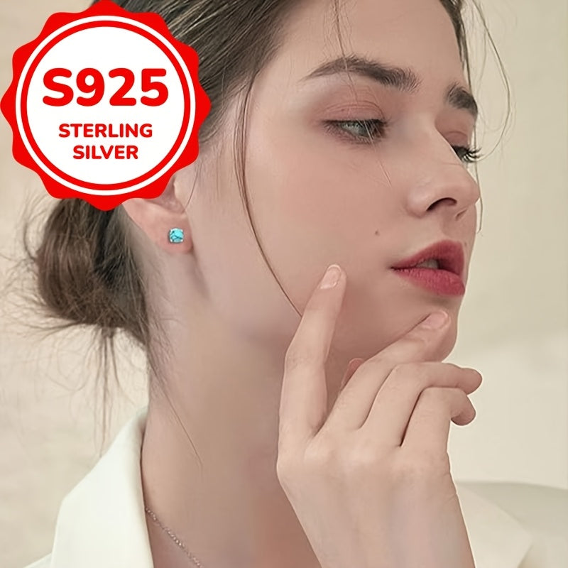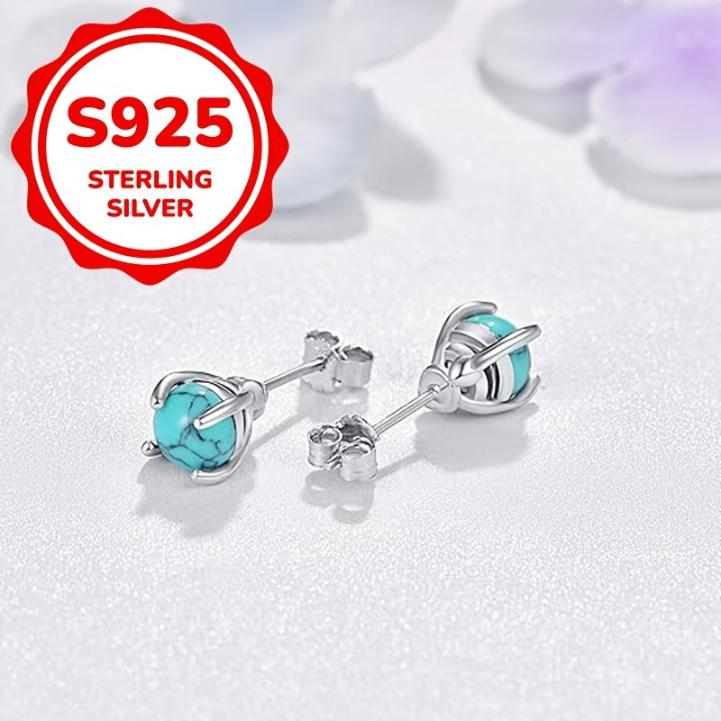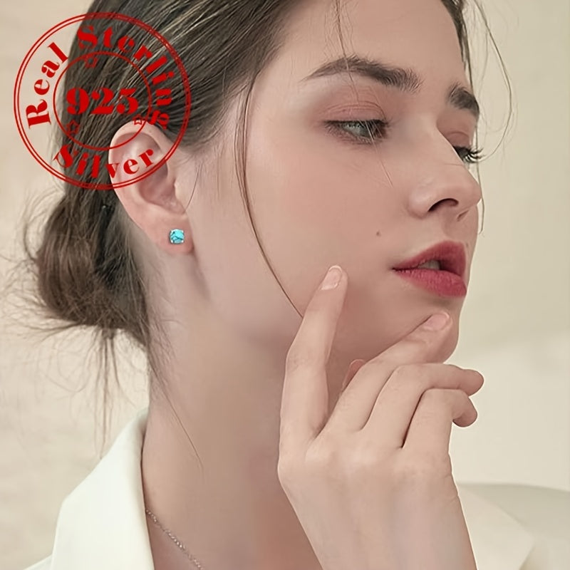 Elegantes Paar S925 Pure Silvery Ohrringe mit eingelegtem türkisfarbenem Muster, perfekt für den täglichen Verschleiß.