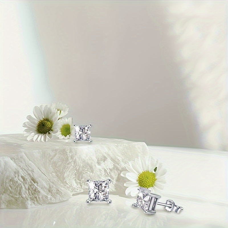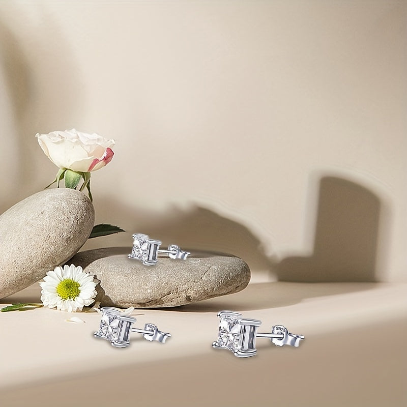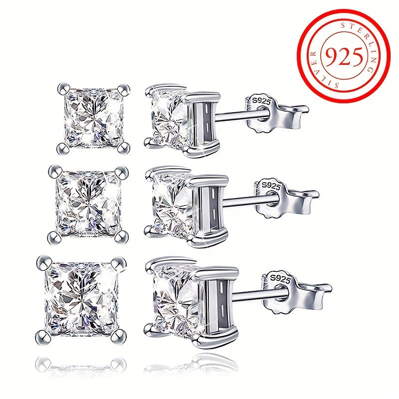Elevate your style with this classic and elegant three-piece set of women's square zirconia earrings. Perfect for adding a touch of personality to your look.