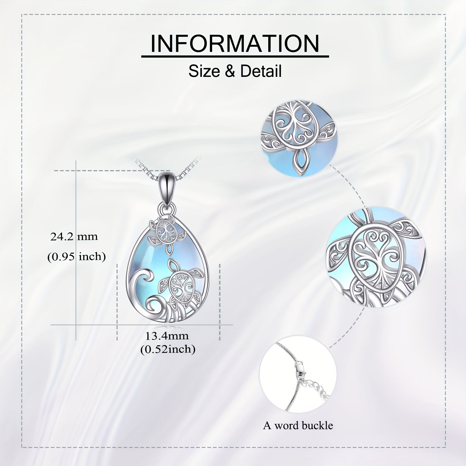 Turtle Necklace with Moonstone in Pure Silvery for Mom