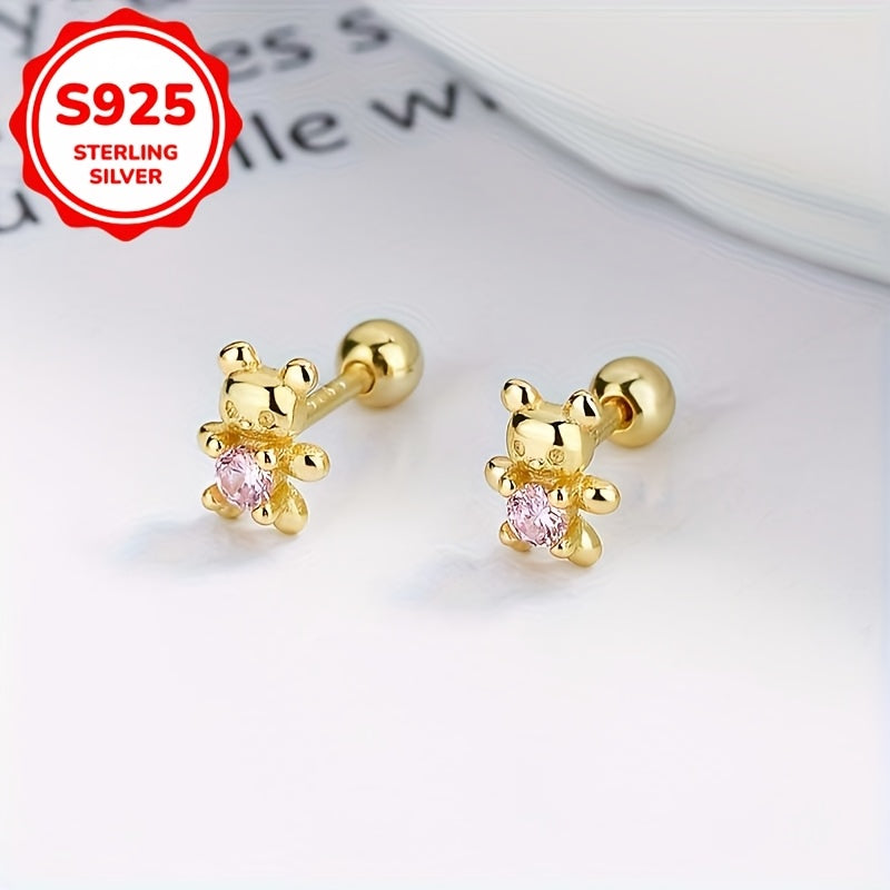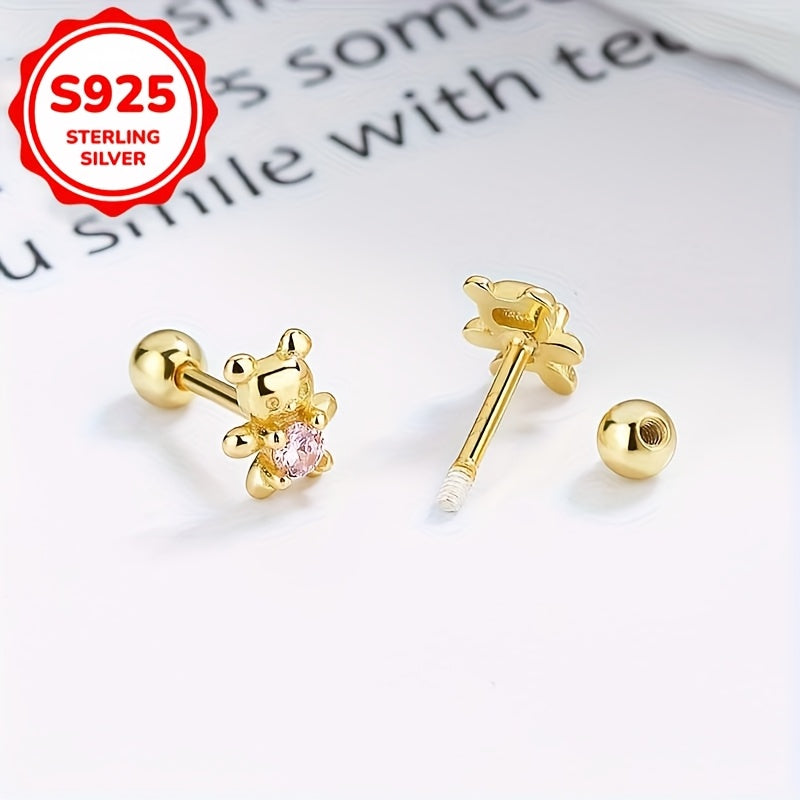 Silberbärenstift Ohrringe Zirkonia hypoallergen japanischer Stil