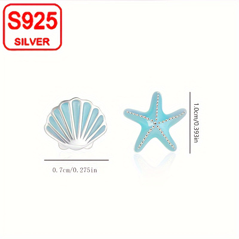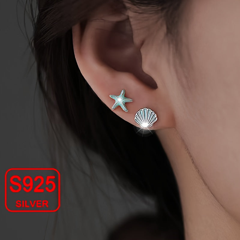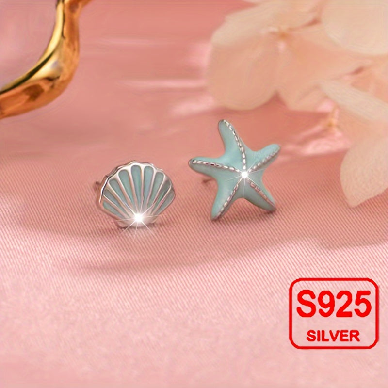 Summer Seaside Starfish Shell Earrings S925 Silver