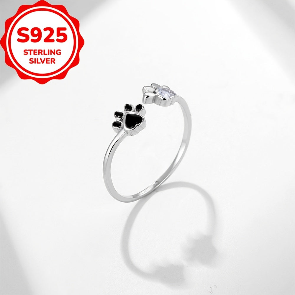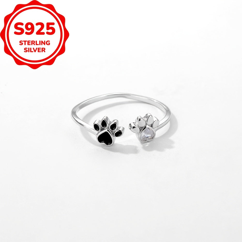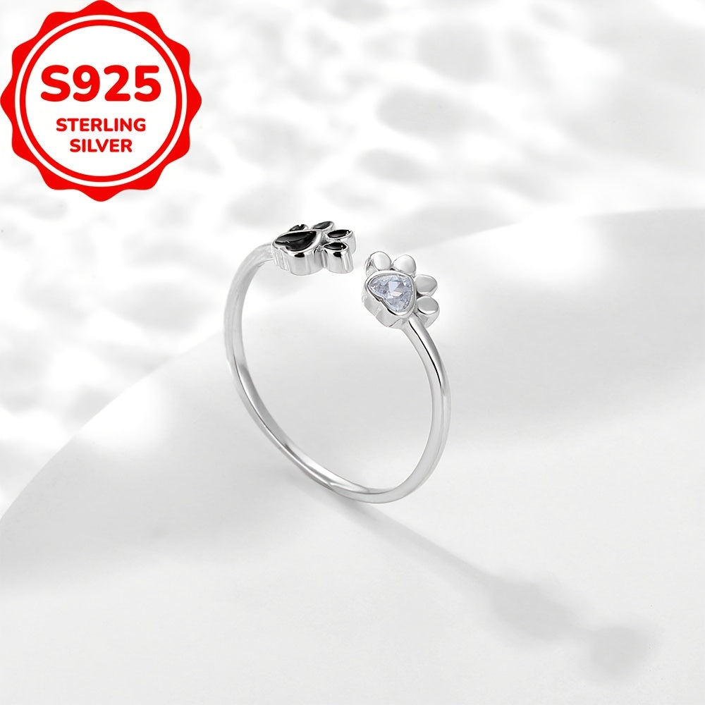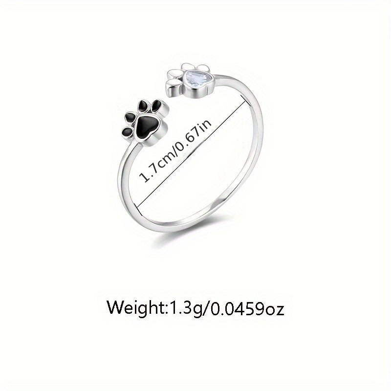 Sterling Silber Cat & Dog Footprint Zirkonia Ring