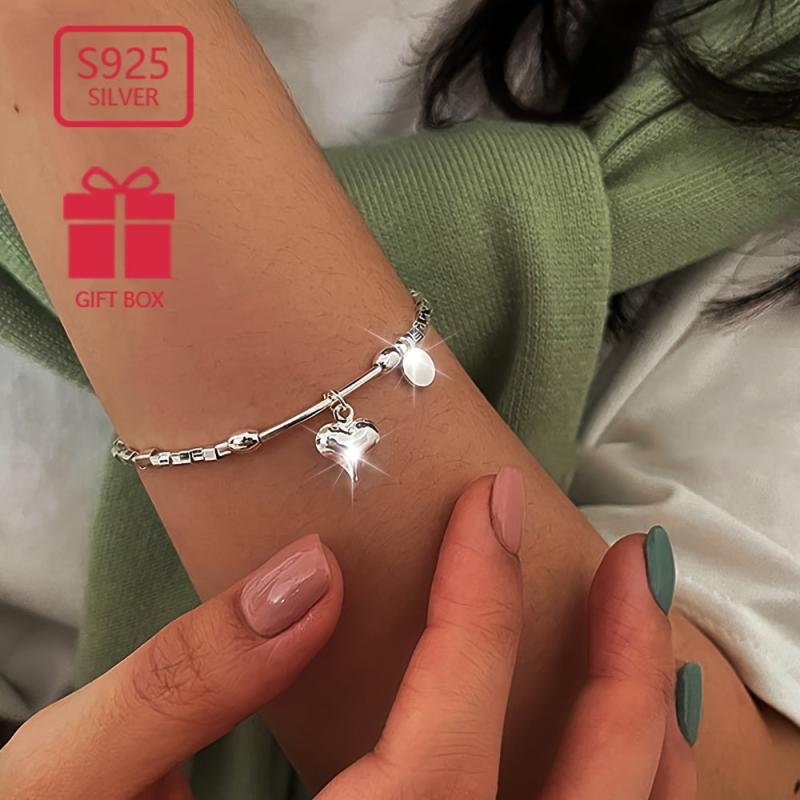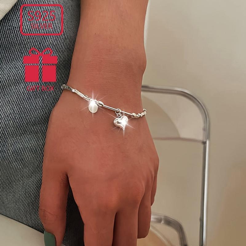 Dieses S925 Silver Love Heart Pendell -Armband ist ein perfektes Jubiläumsgeschenk für Frauen. Es verfügt über ein stilvolles Design und wiegt ungefähr 4,37 g.