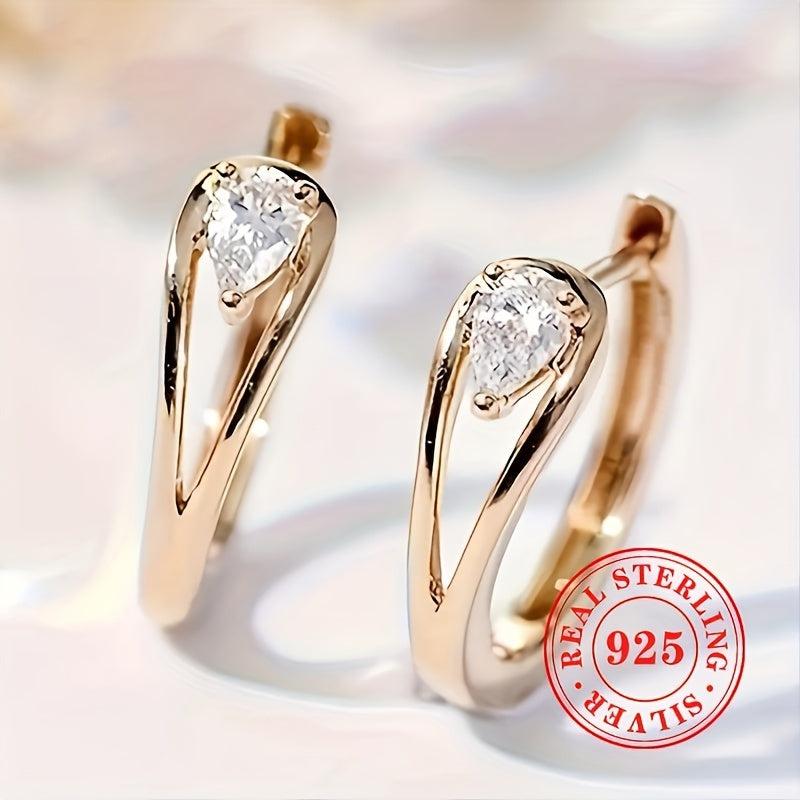 Elegantes Paar von Reifenohrringen aus S925 -Sterlingsilber mit Tränenkubikzirkonia -Bolzen. Perfekt für tägliche Verschleiß oder Partys und diese Ohrringe machen ein großartiges Aussagen im Urlaubsstil.