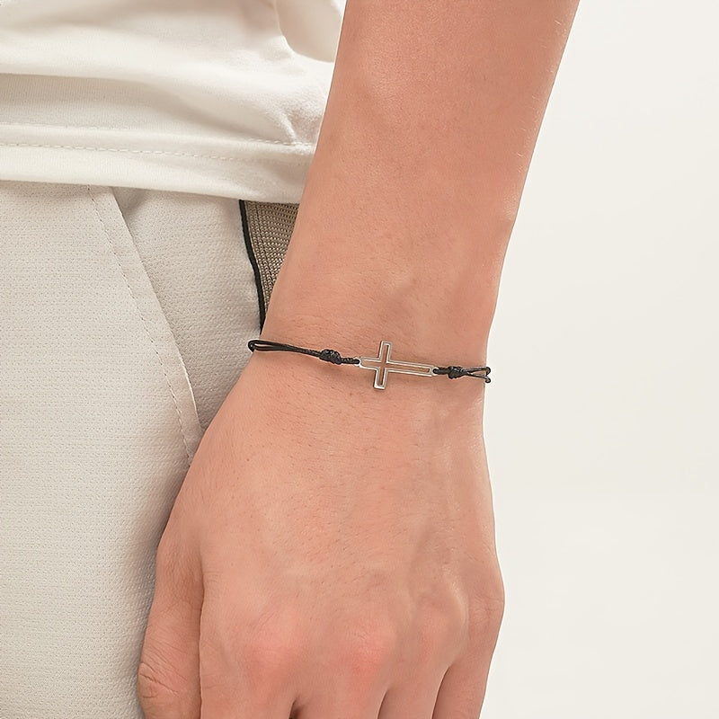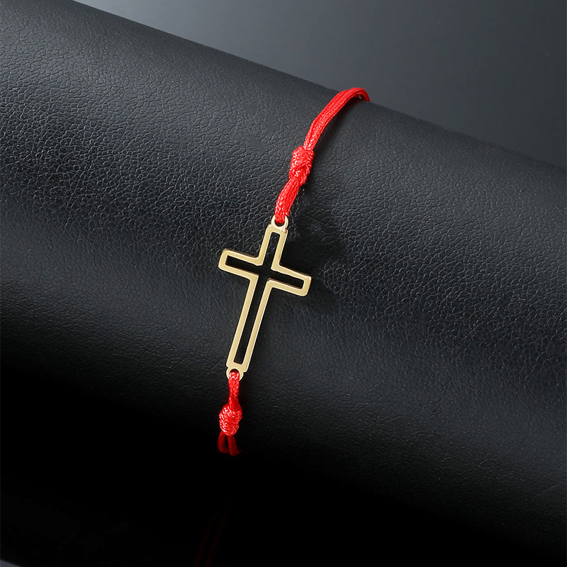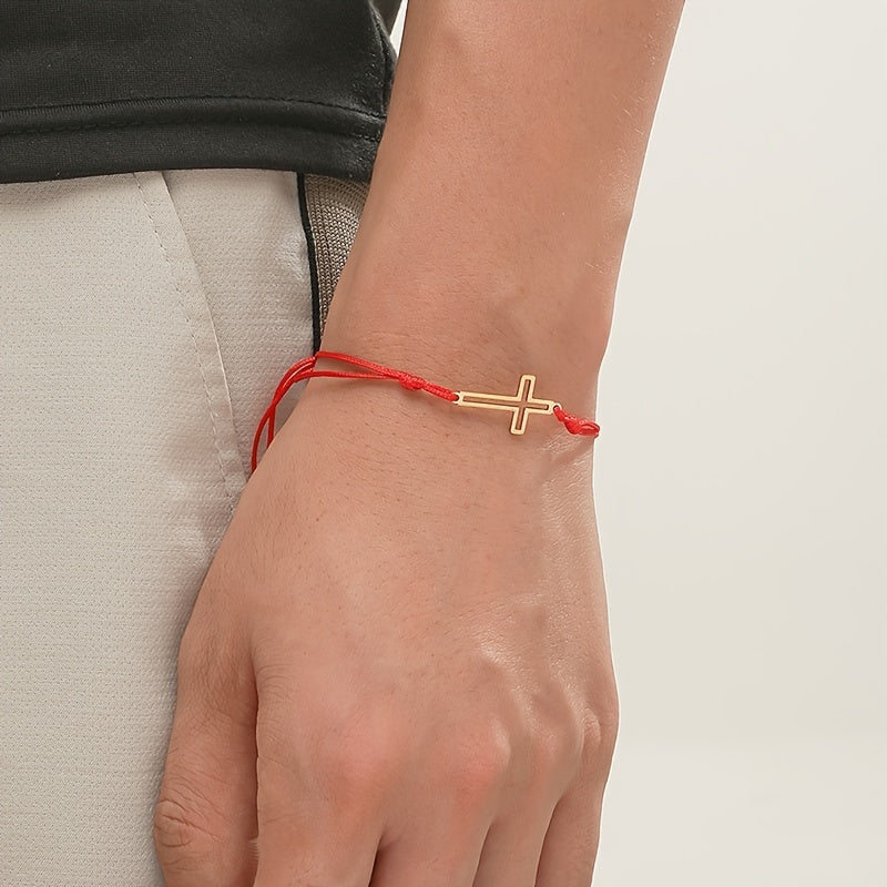 Enhance your style with this adjustable red bracelet featuring a cross strap design. Perfect for casual or formal wear.