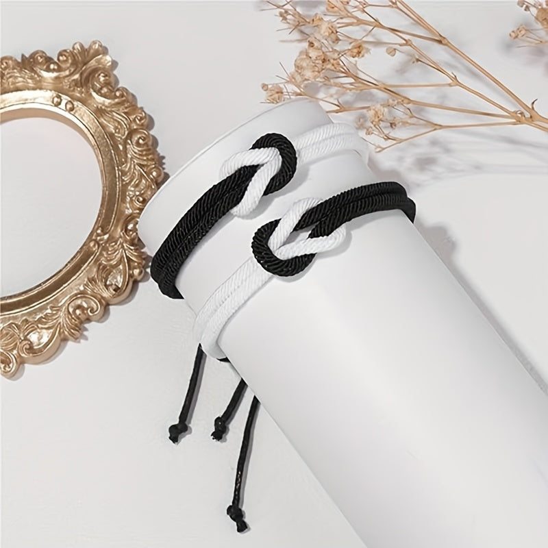 Celebrate your love with this boho adjustable couples bracelet set featuring 2pcs of matching rope designed for him and her. Perfect for anniversaries and gifts.