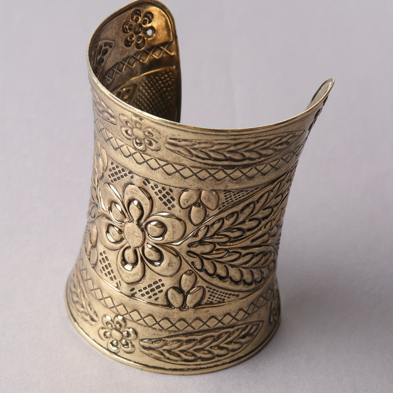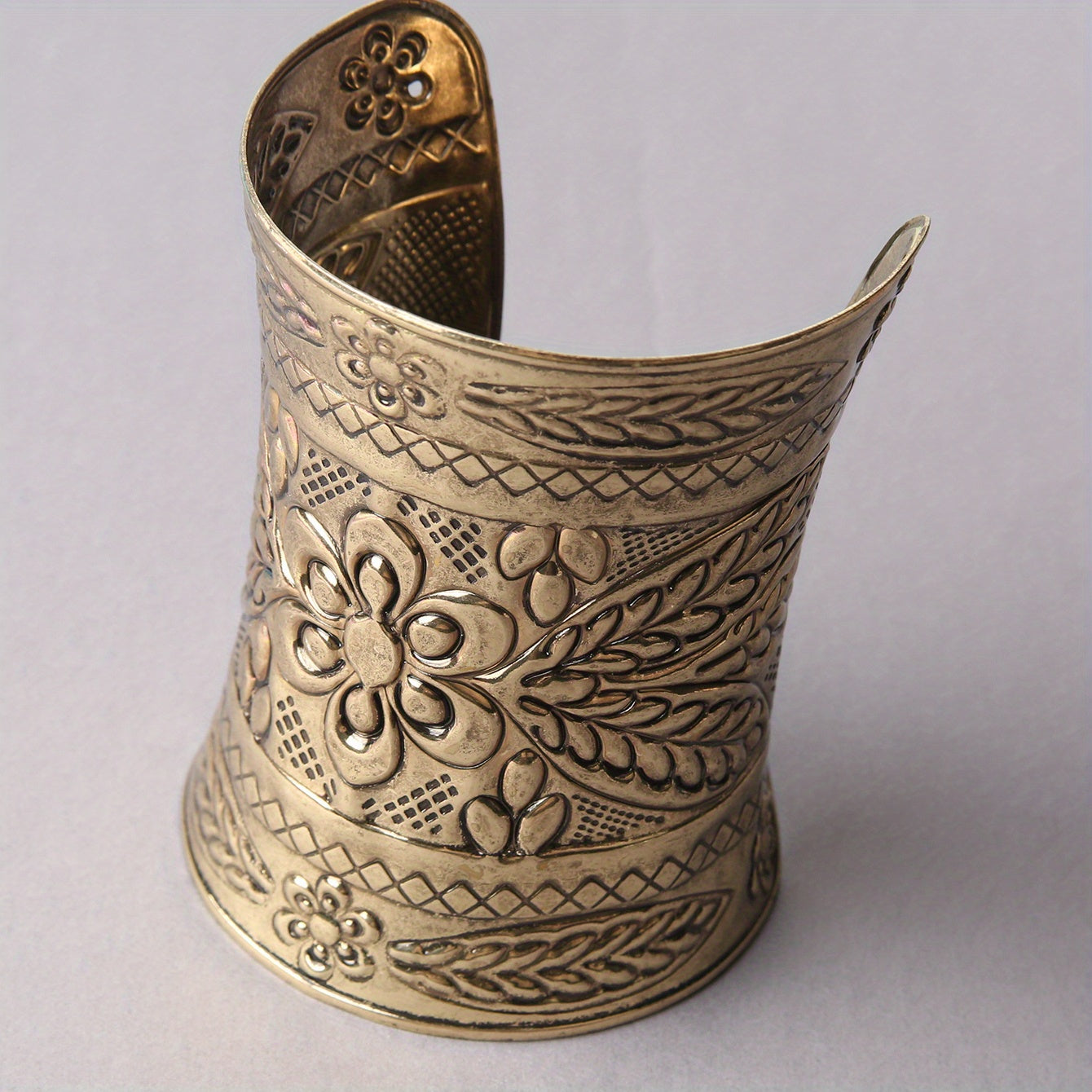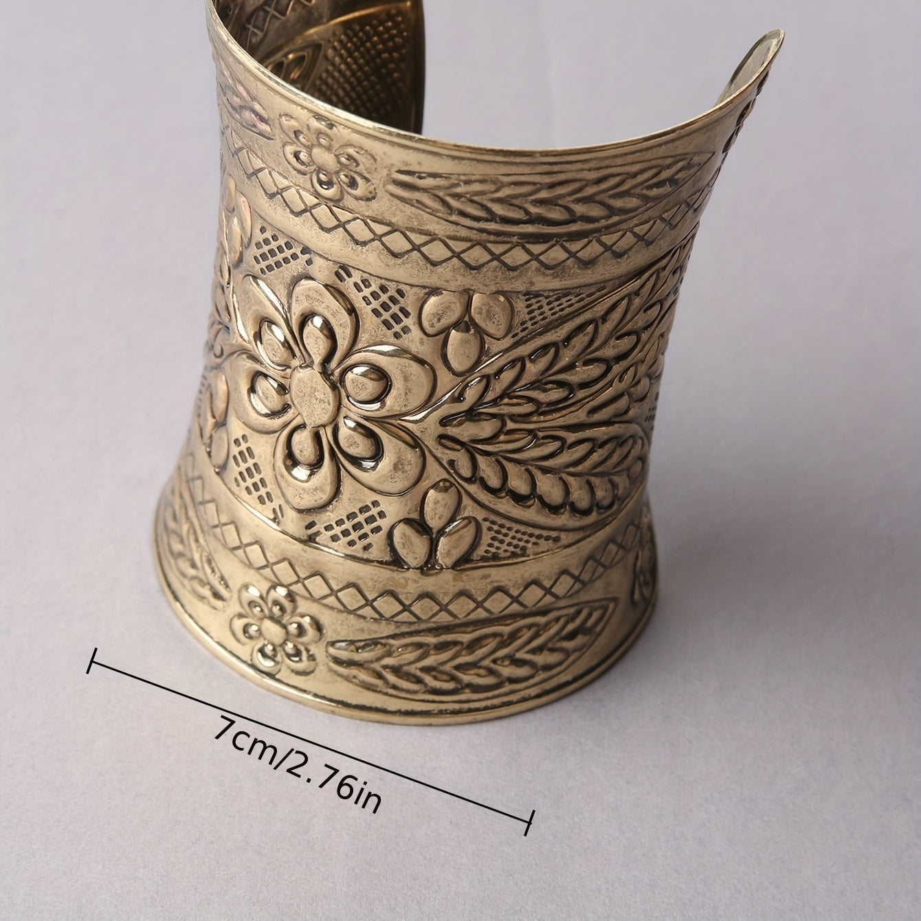Add a touch of bohemian flair to your style with this wide cuff bracelet featuring a beautiful flower pattern. Perfect for women and girls, this hand jewelry decoration adds a unique and trendy look to any outfit.
