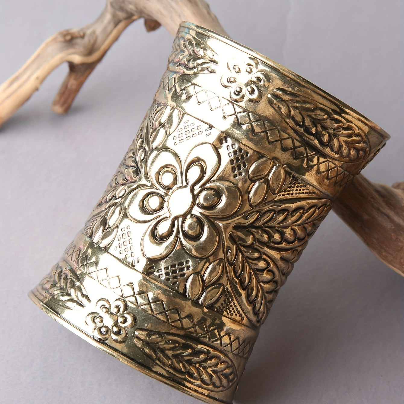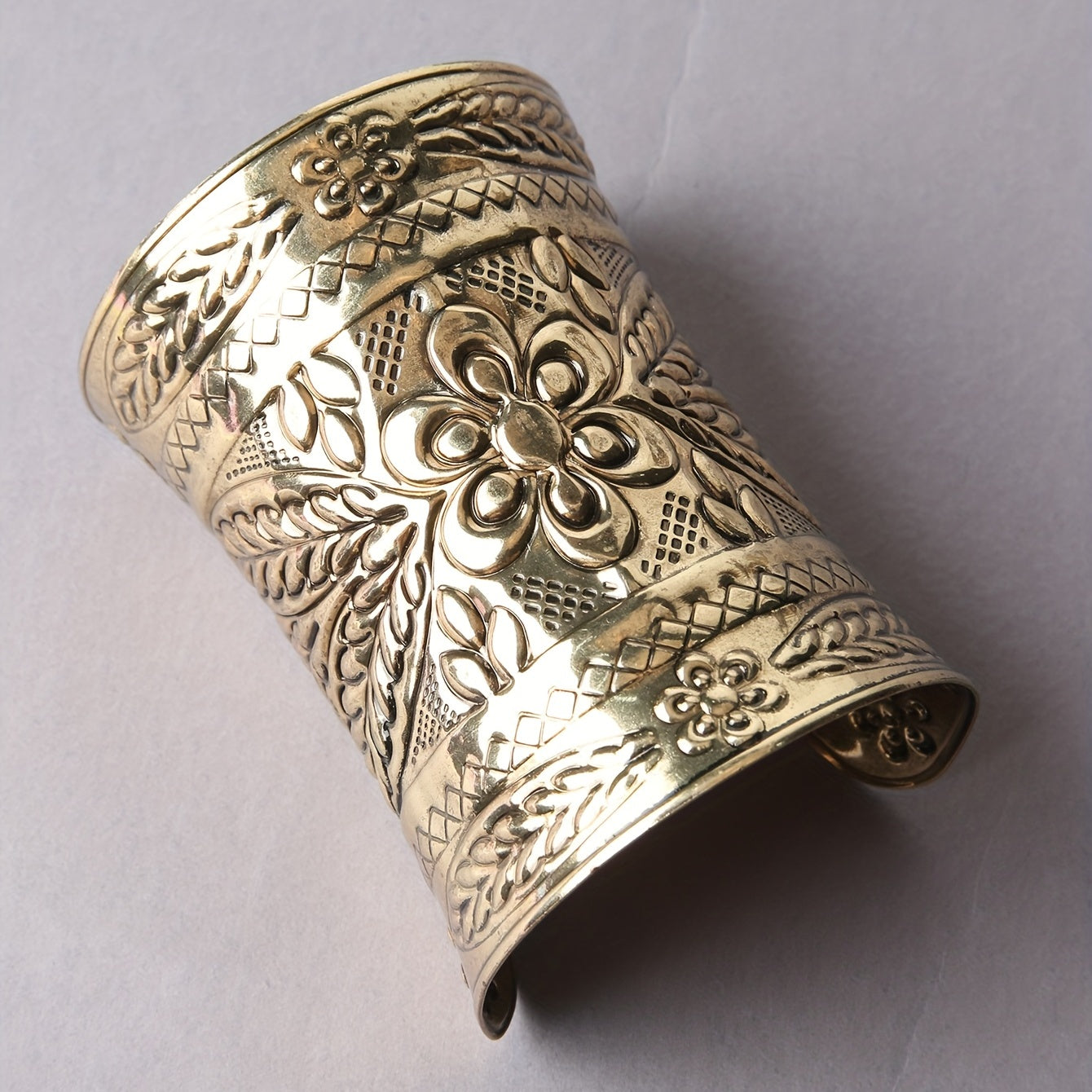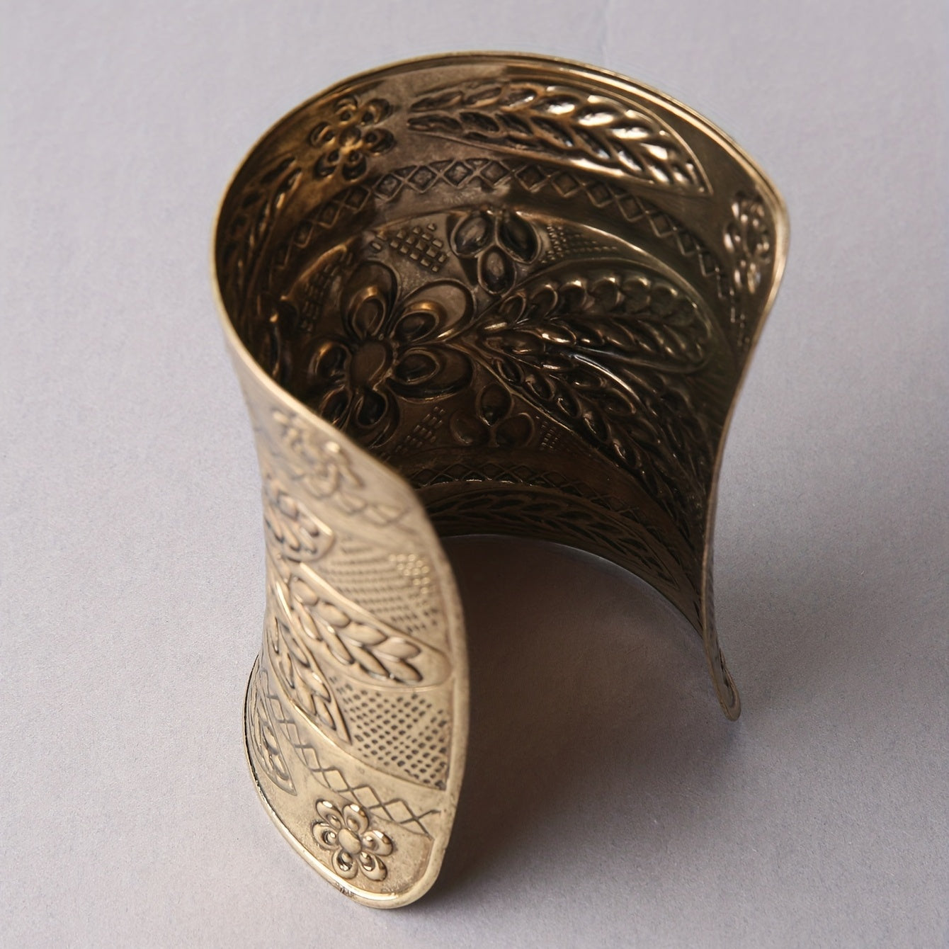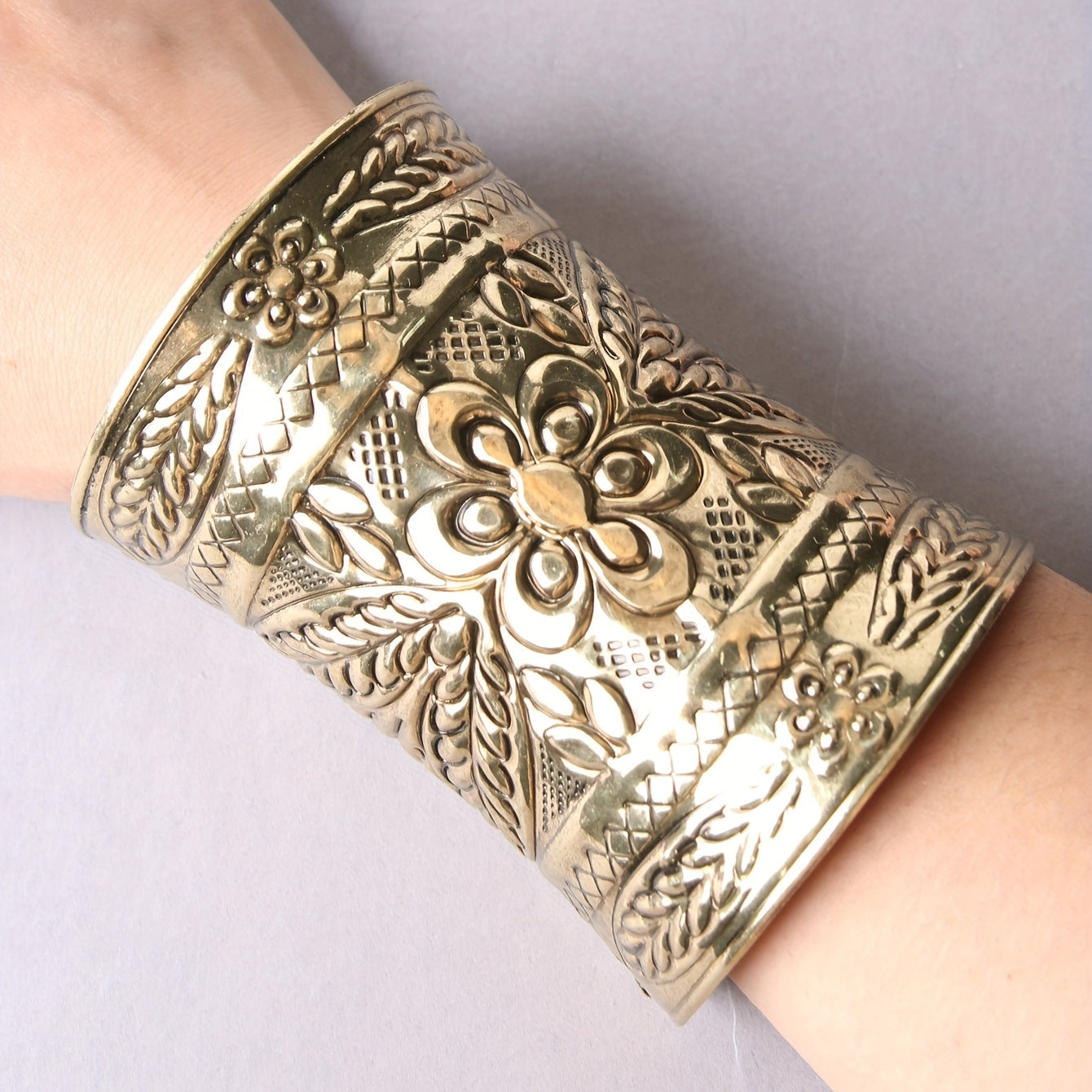 Add a touch of bohemian flair to your style with this wide cuff bracelet featuring a beautiful flower pattern. Perfect for women and girls, this hand jewelry decoration adds a unique and trendy look to any outfit.