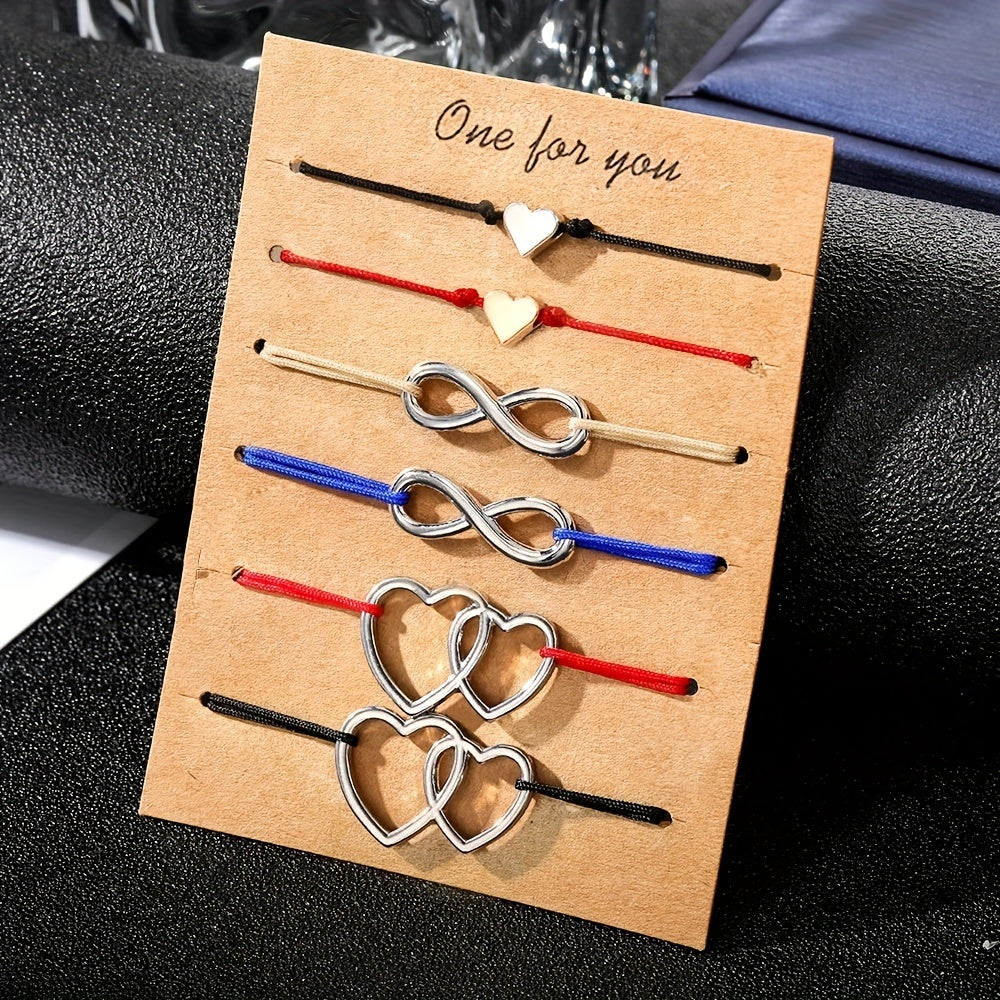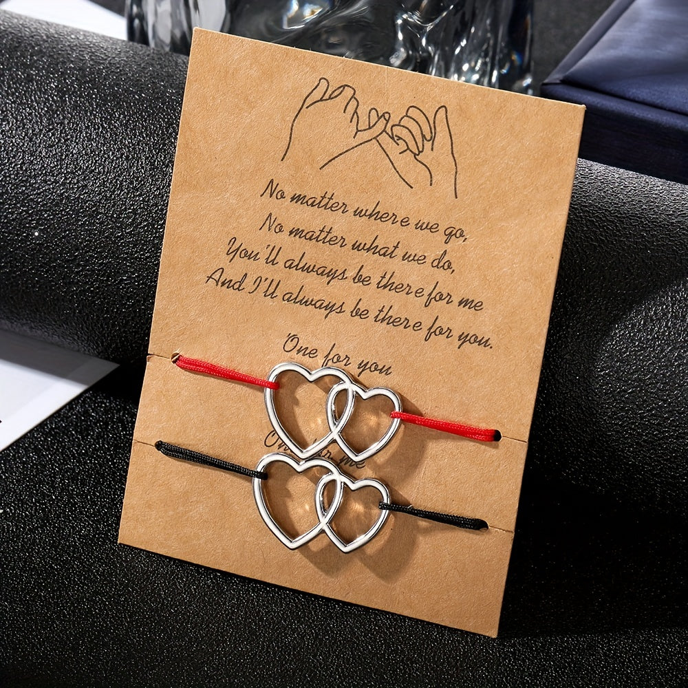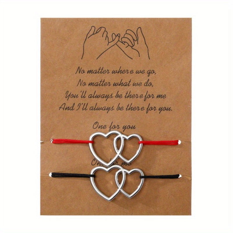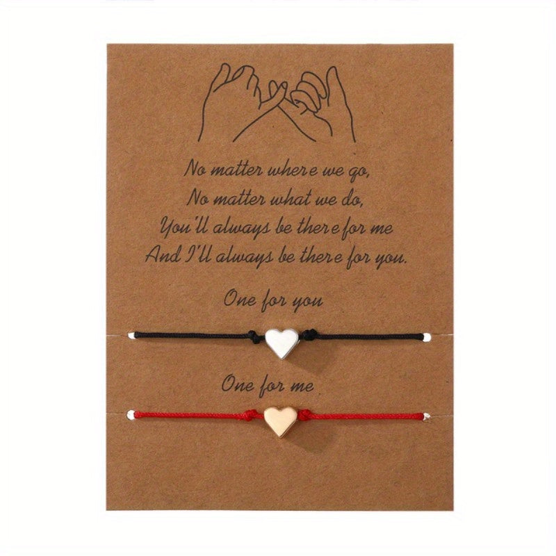 Braided Rope Love Heart Charm Friendship Bracelet With Blessing Card