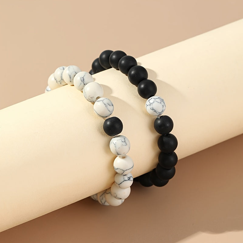 This casual beads chain bracelet is perfect for men and can also be a special birthday or friendship gift. It's unisex and features an elastic design for easy wearing.