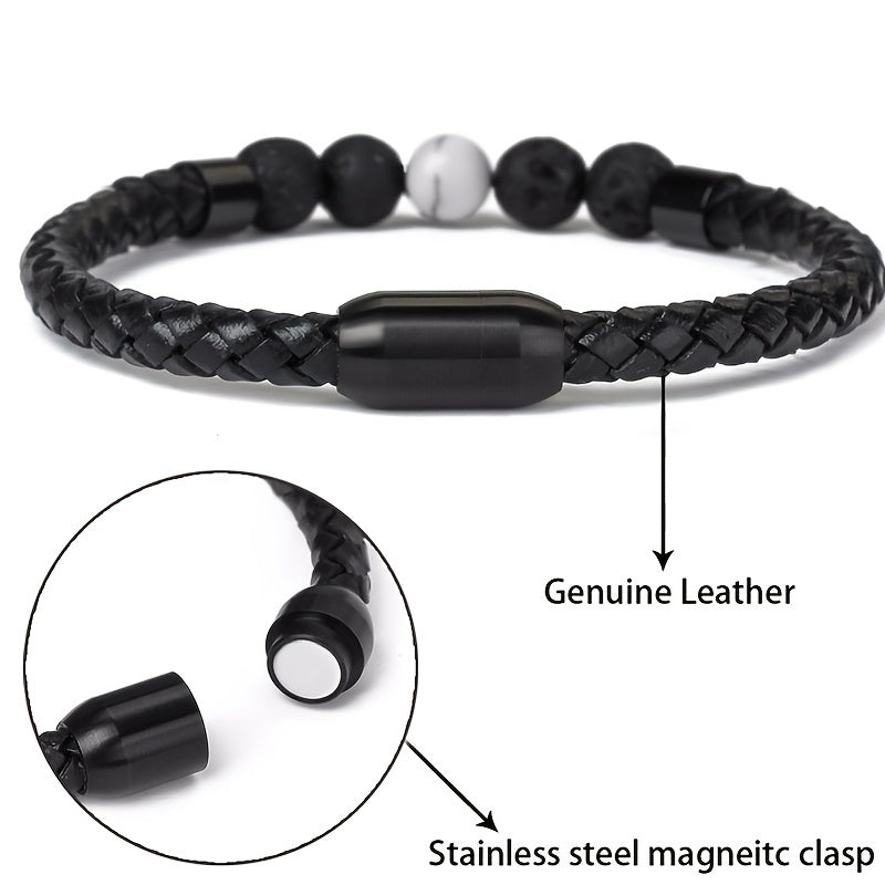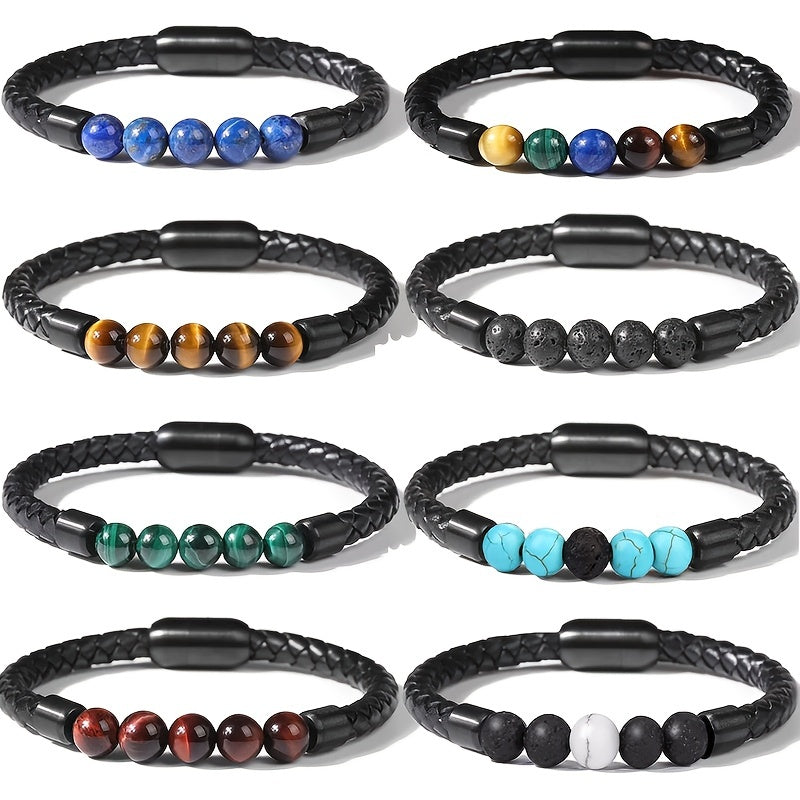 This stylish bracelet features colorful Tiger's Eye beads and a stainless steel magnetic clasp on a leather rope. Perfect for everyday wear or special occasions.