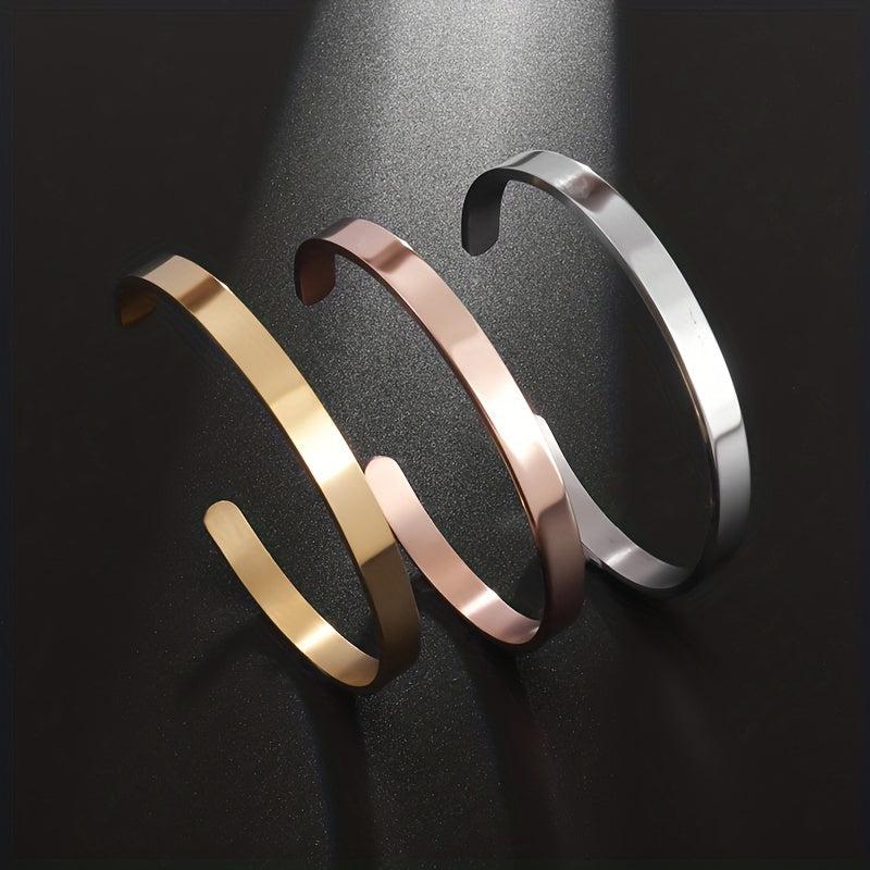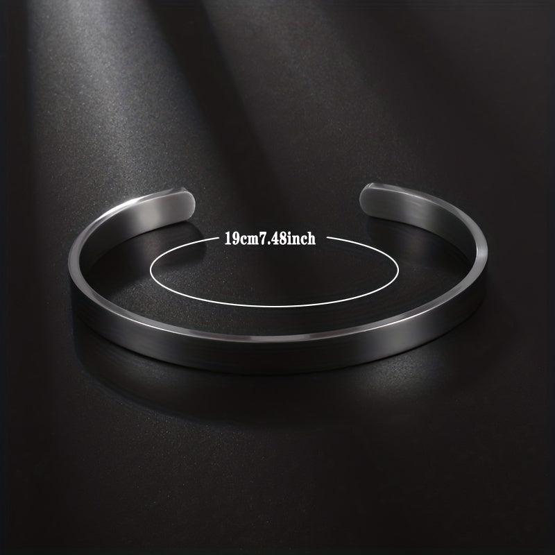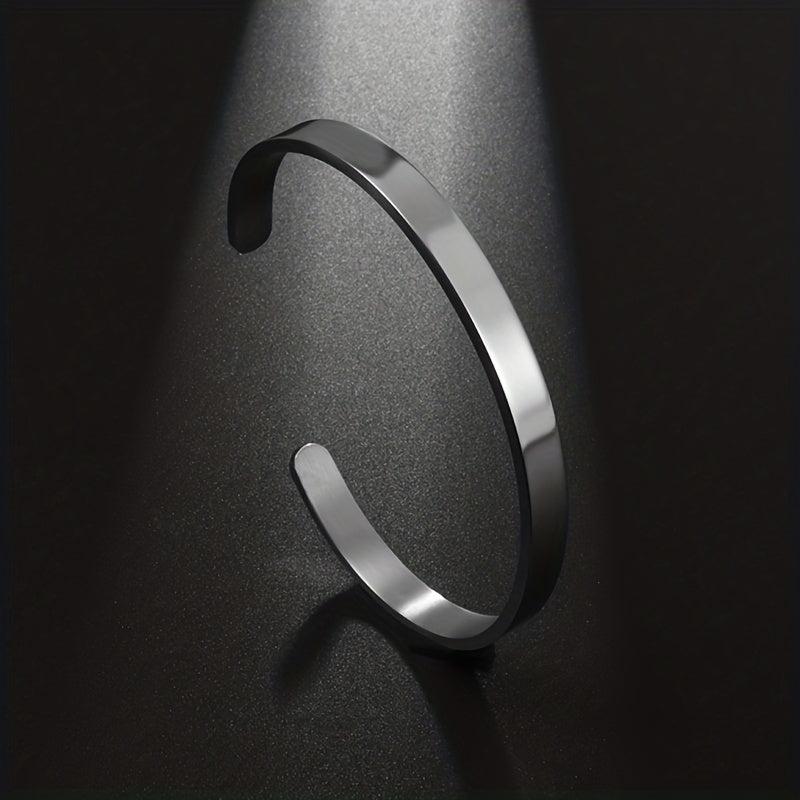 This fashionable cuff bracelet is made of high-quality stainless steel, suitable for both men and women. It's perfect for casual wear and adds a touch of style to any outfit.