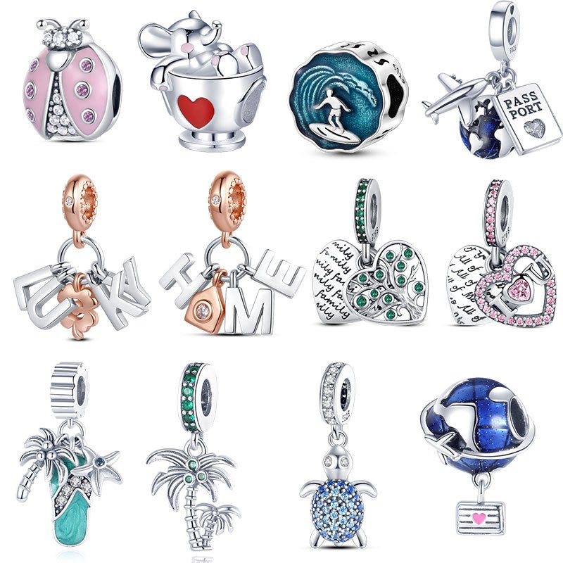 Elephant Coconut Tree Beach Starfish Charms Beads Silver Plated
