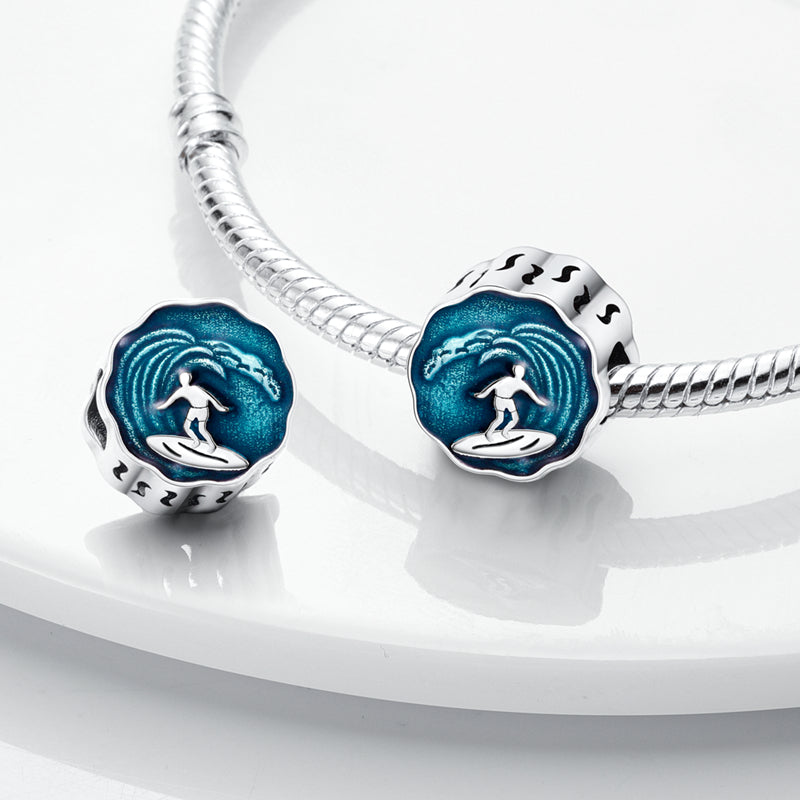 Add a touch of summer to your charm bracelet with this lucky letter charm featuring an elephant, coconut tree, beach, and starfish. Made of silver-plated metal, this charm is a perfect anniversary gift for women.