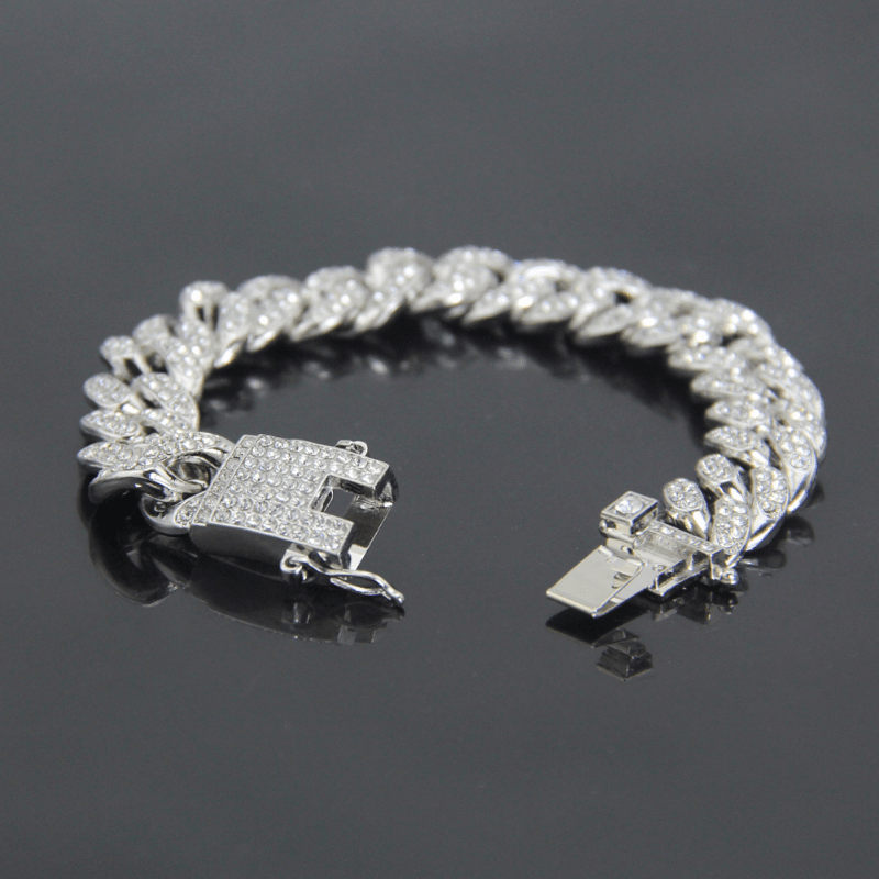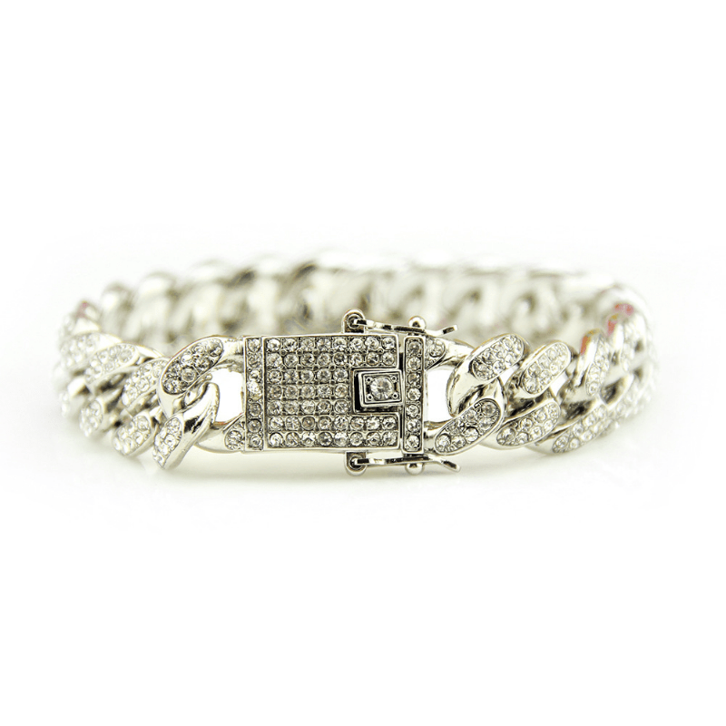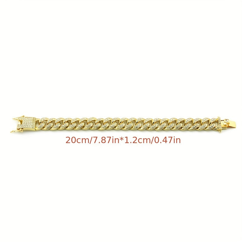 This hip hop bracelet features a wide 12mm design with rhinestones and faux diamonds, perfect for adding a stylish touch to your outfit. Ideal for men who love hip hop fashion.
