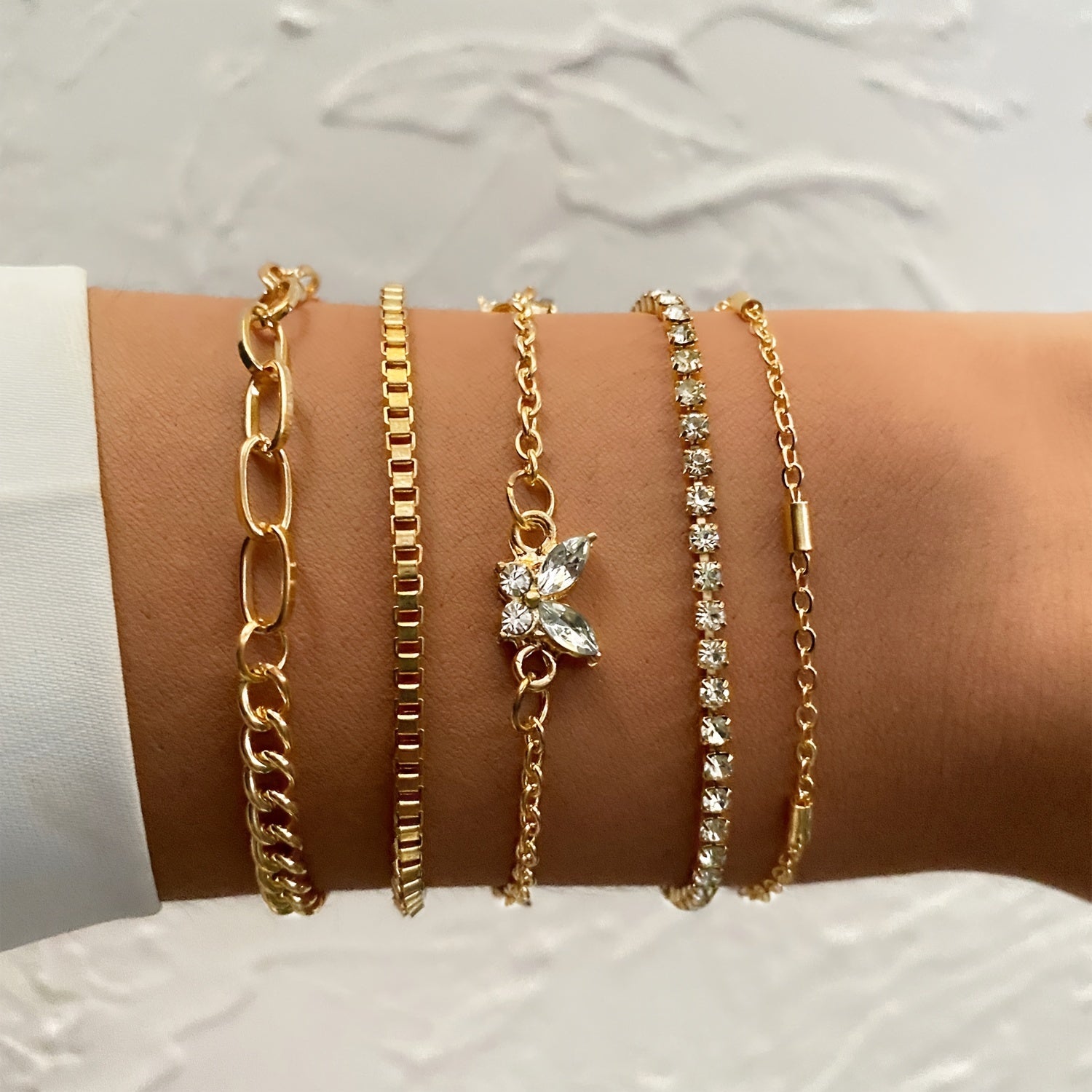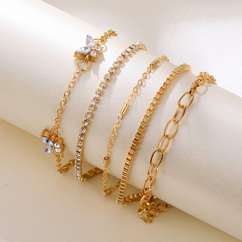 Elegant 5-piece set featuring butterfly design with rhinestones. Perfect for women's jewelry collection.