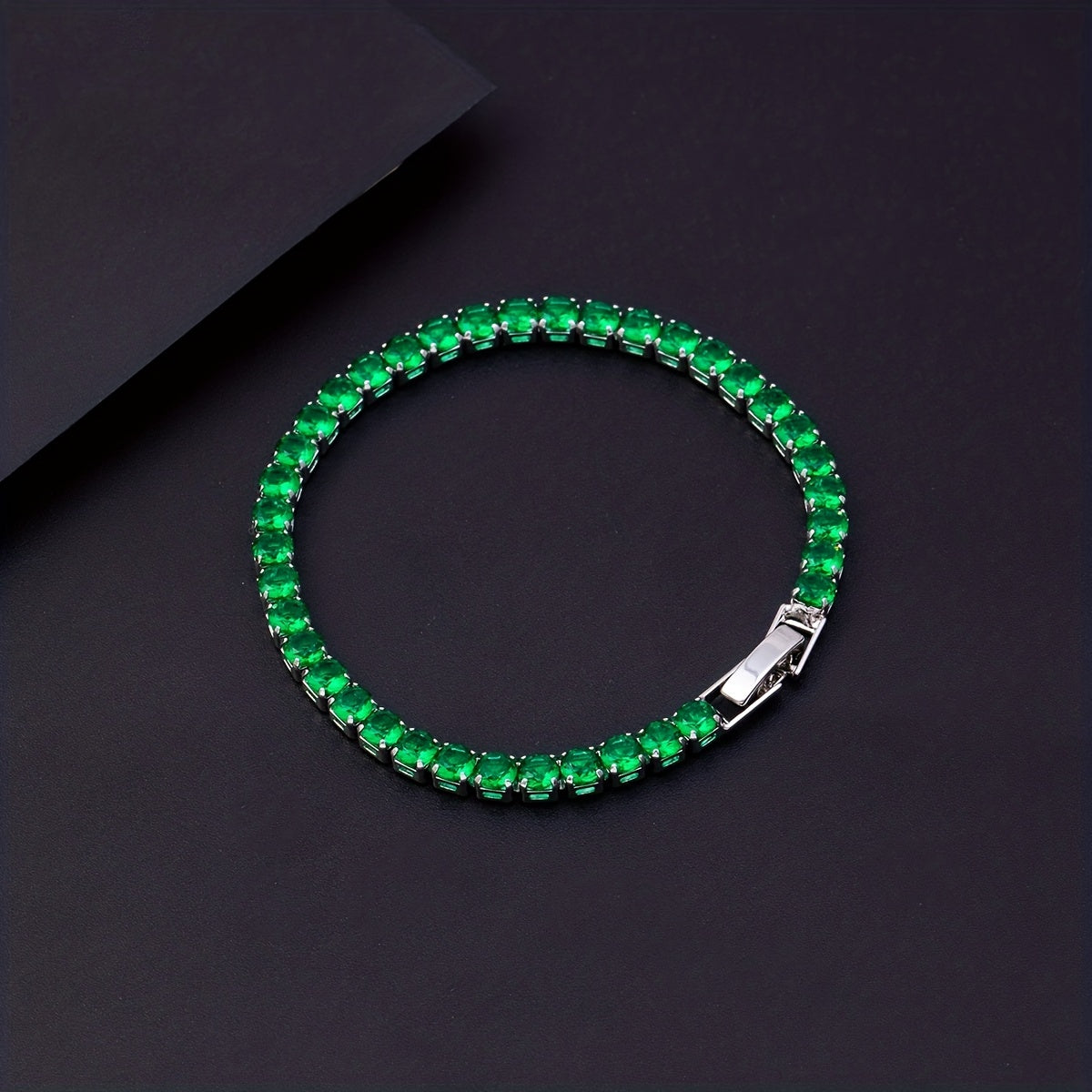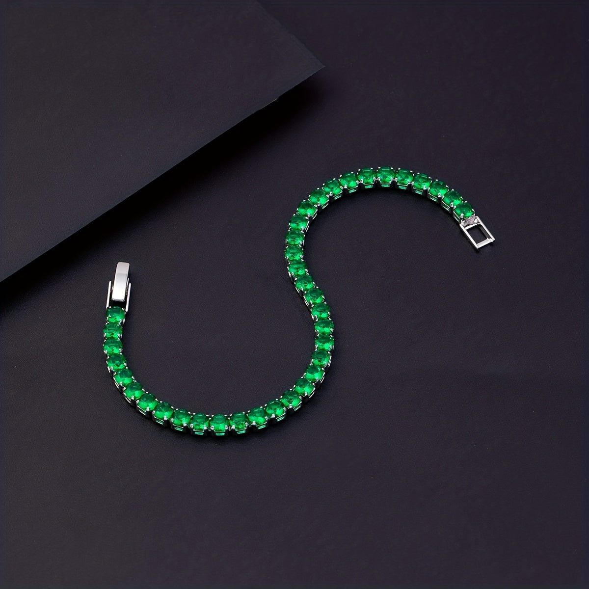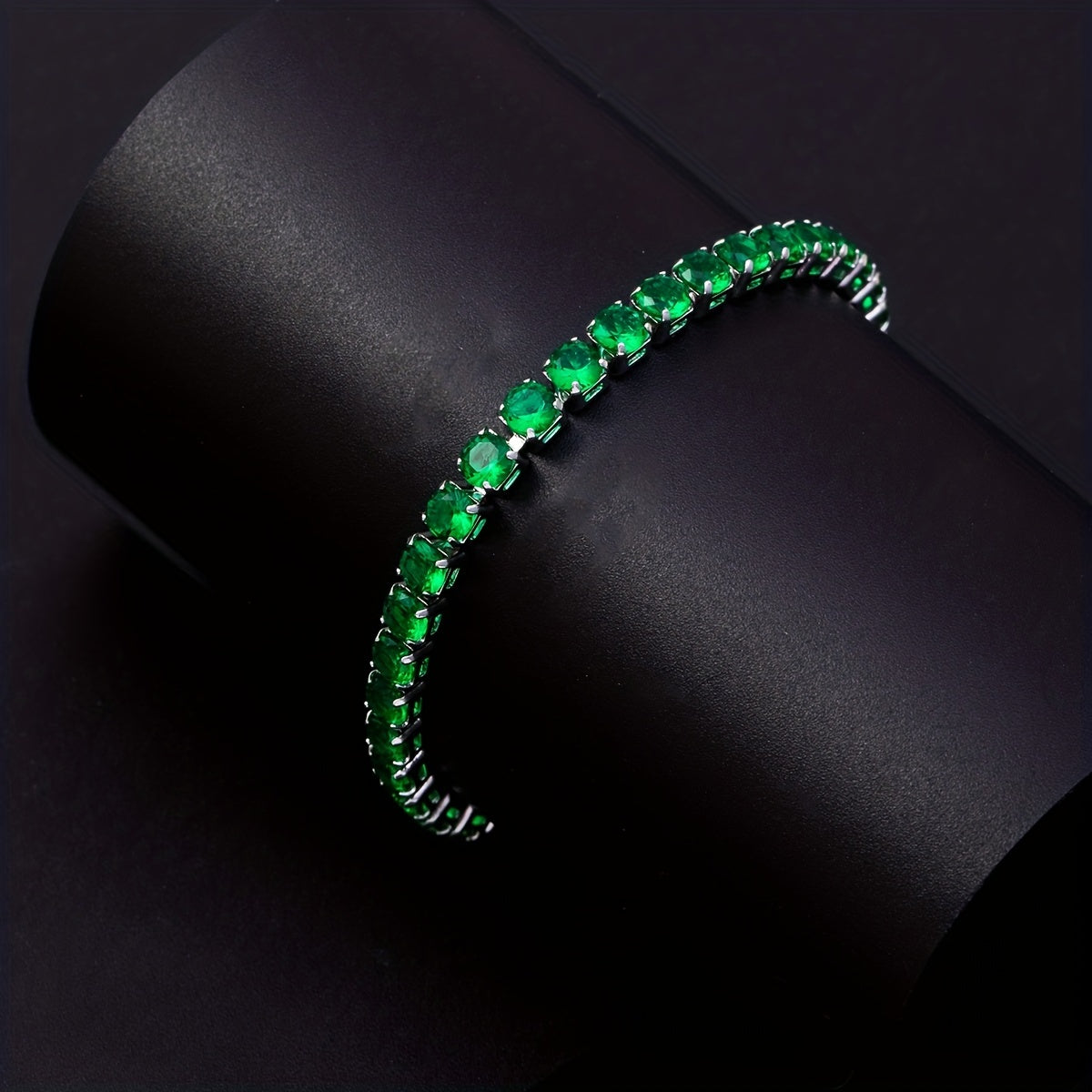 This elegant bracelet features a green circle zircon stone with golden plated 4 claw setting. Perfect for adding a touch of glamour to your outfit.