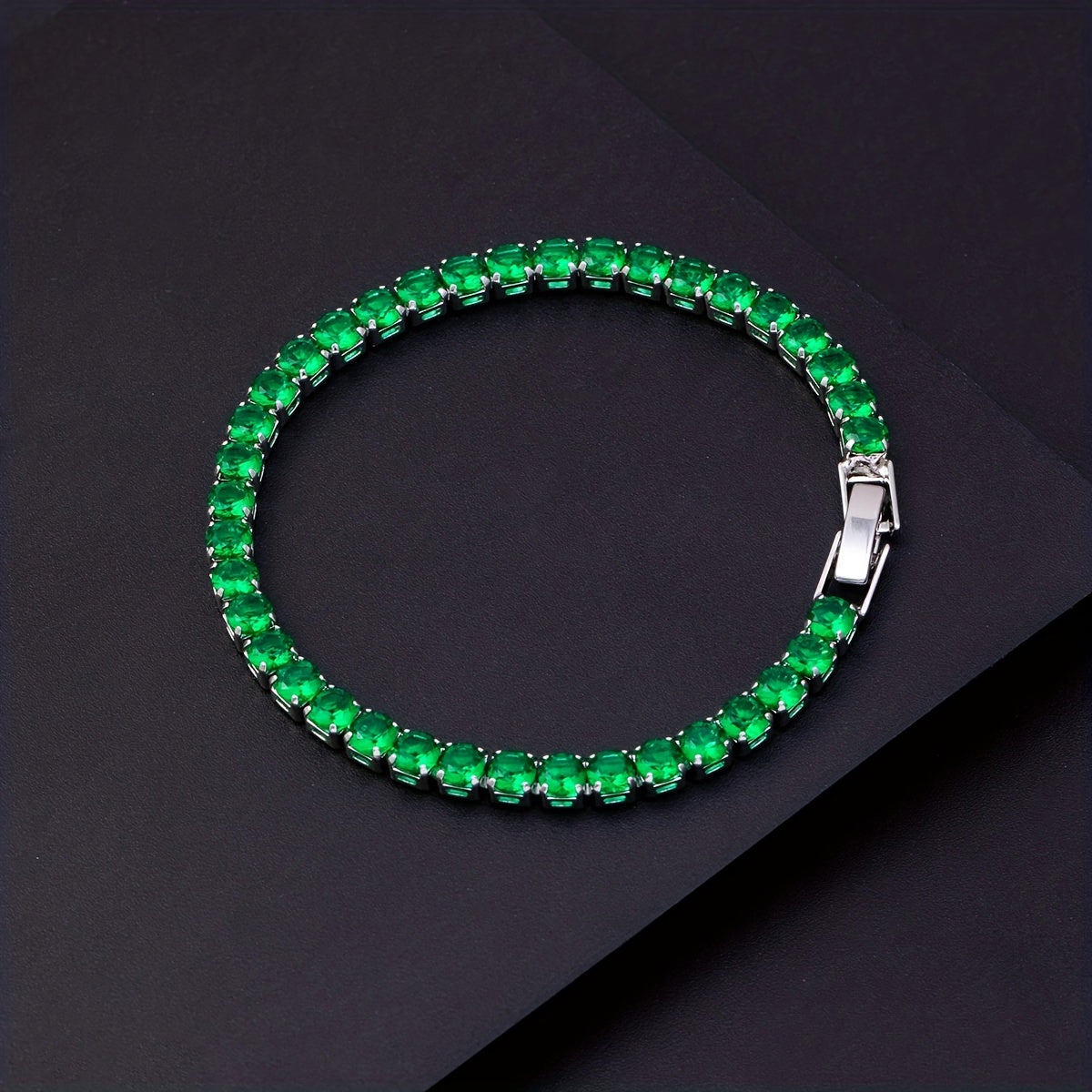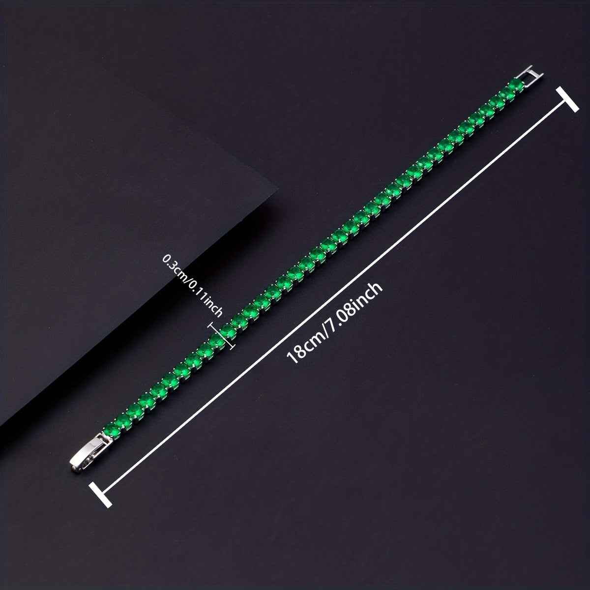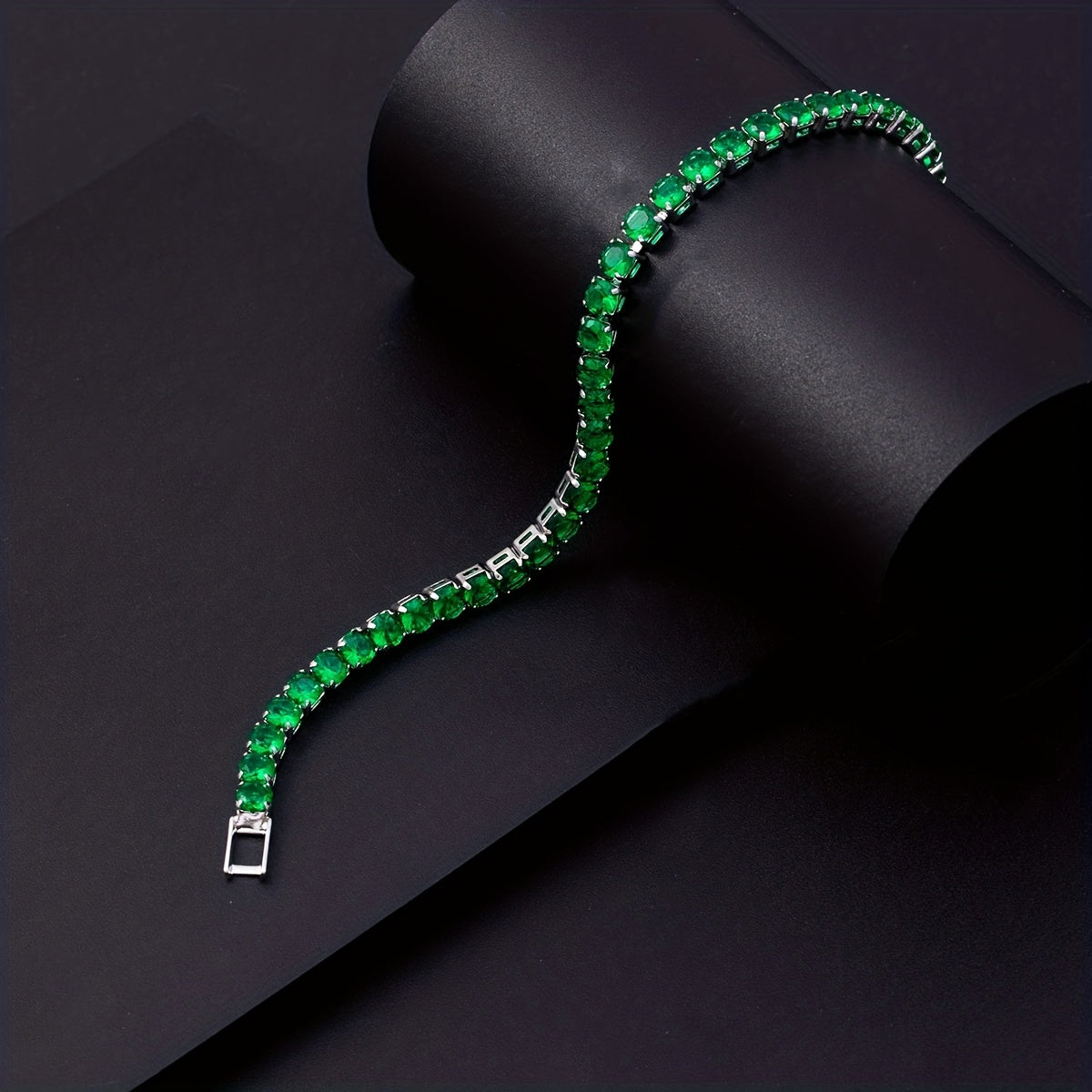 This elegant bracelet features a green circle zircon stone with golden plated 4 claw setting. Perfect for adding a touch of glamour to your outfit.