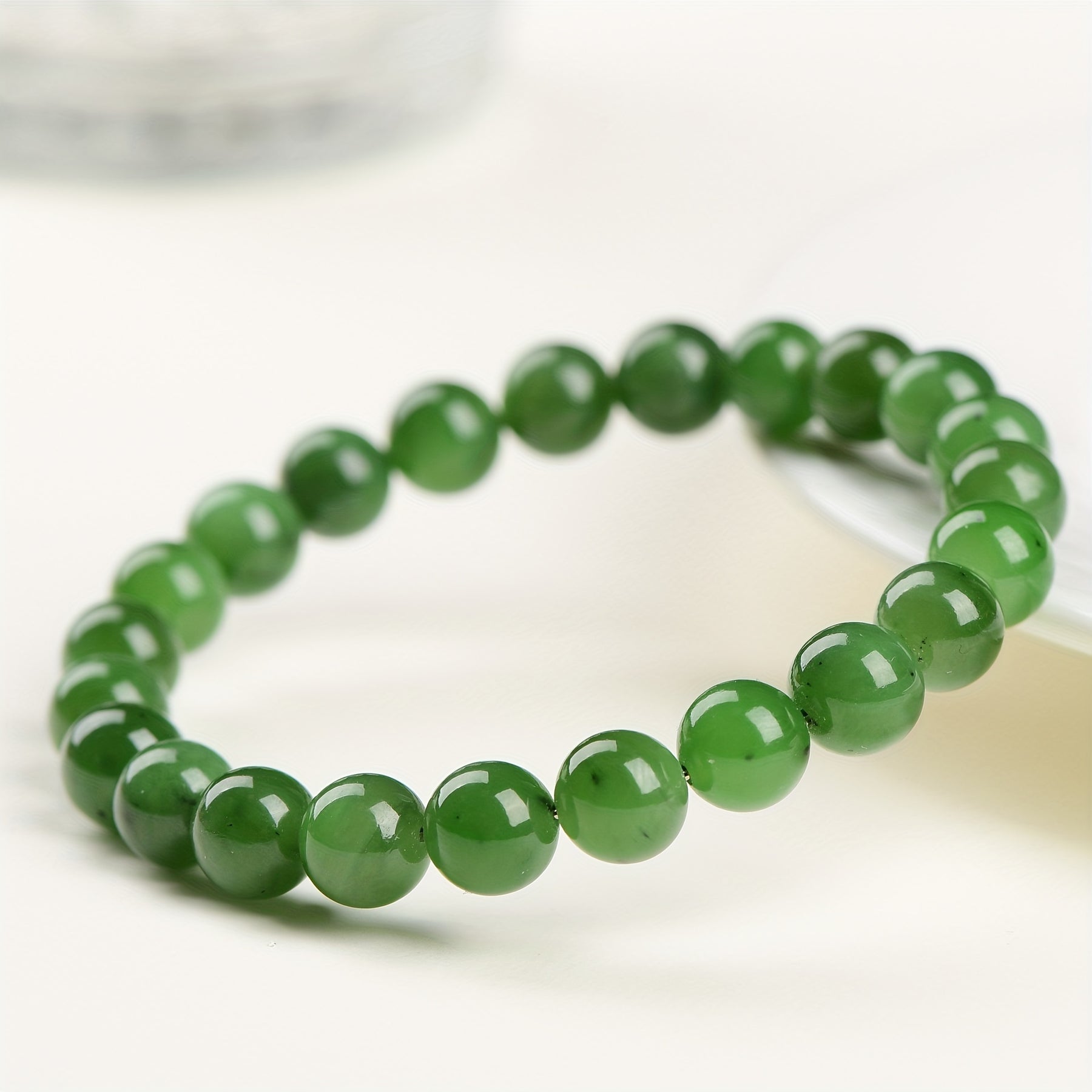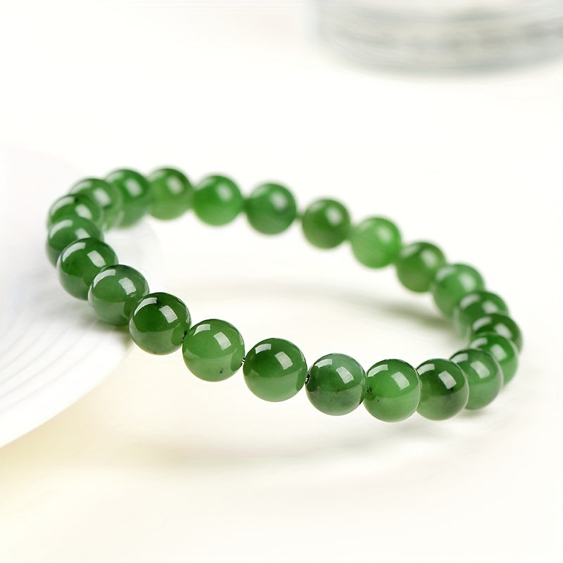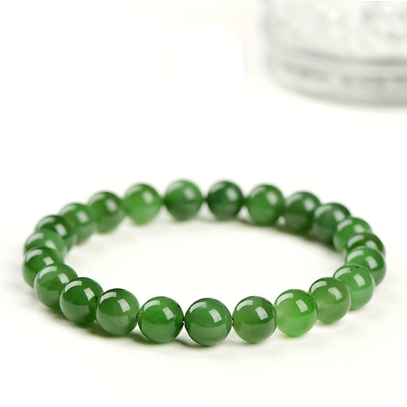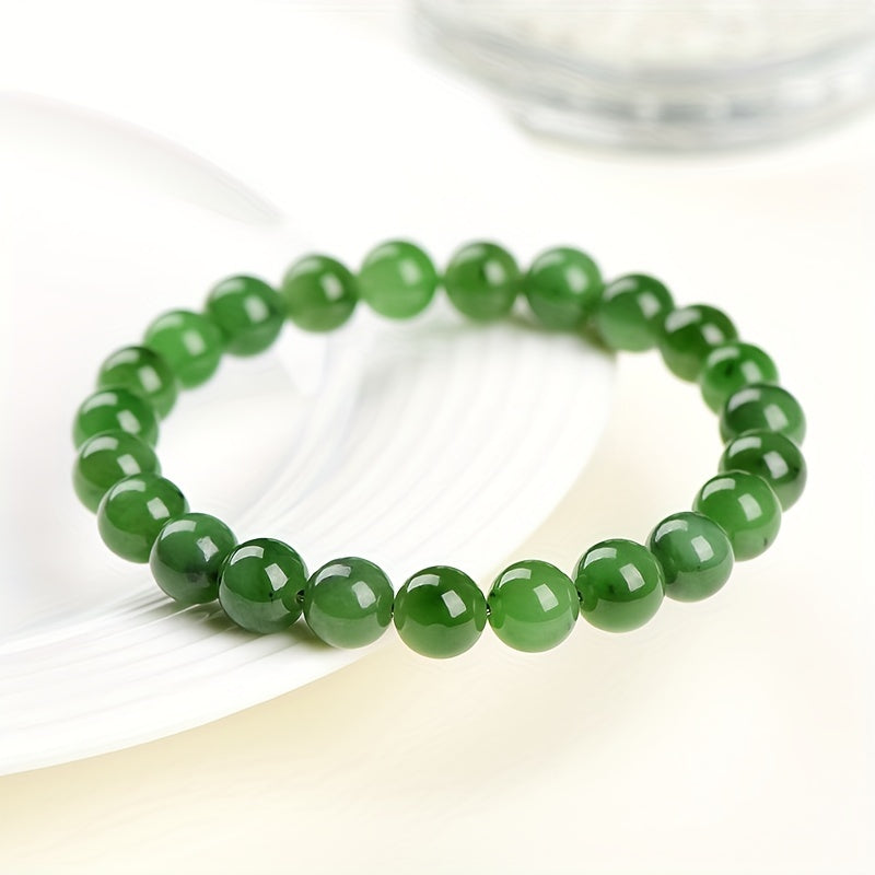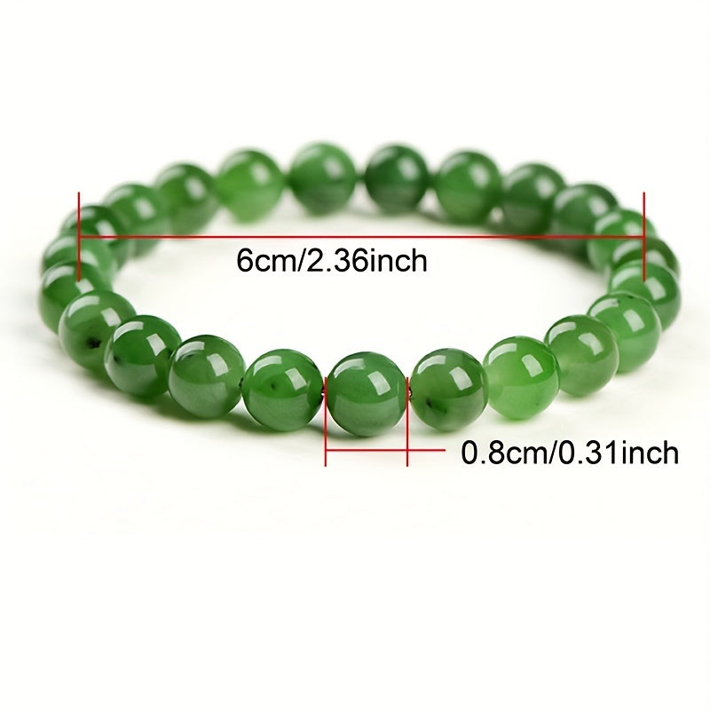 Elegant green jade round bead bracelet designed for men. This bracelet combines style and positive energy, making it a perfect accessory.