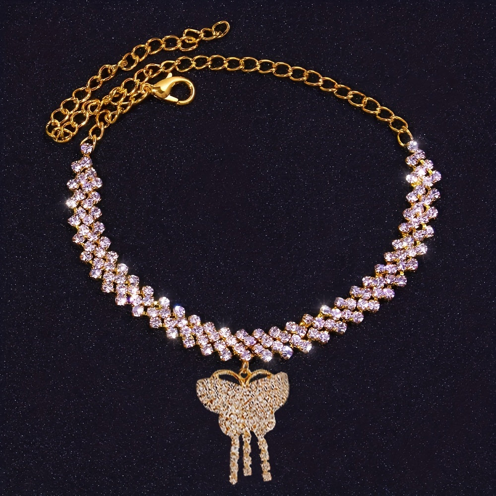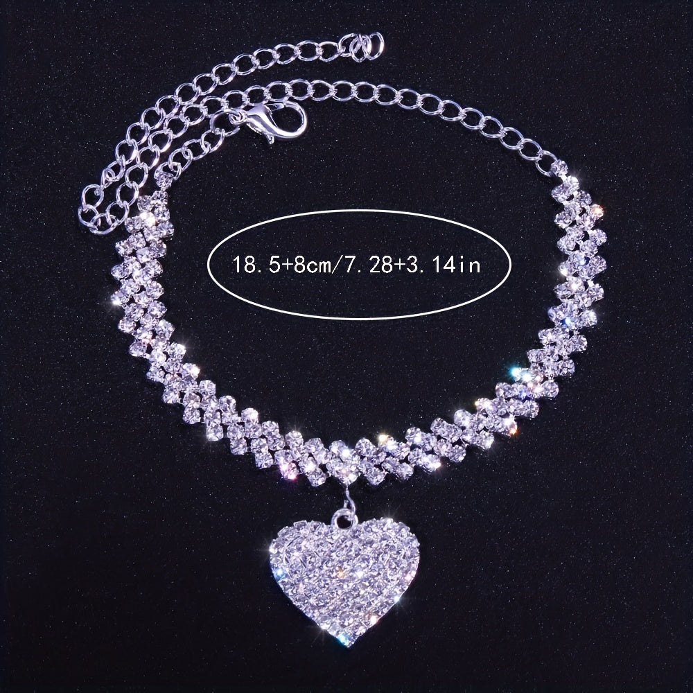This anklet features a heart-shaped pendant on a delicate chain adorned with sparkling rhinestones. It is a perfect accessory for weddings and special occasions.
