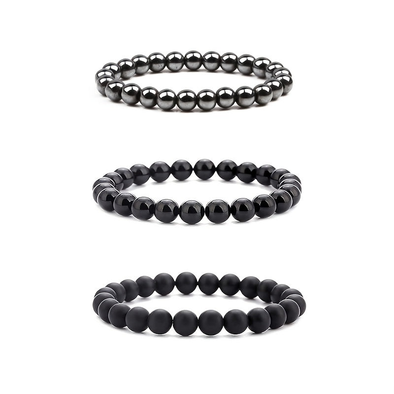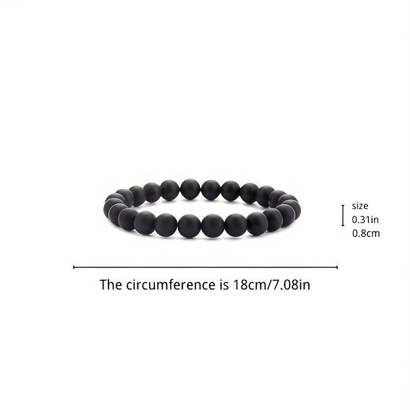 This 8mm beaded bracelet is made of hematite, agate, and frosted stones. It's a personalized accessory suitable for casual wear.