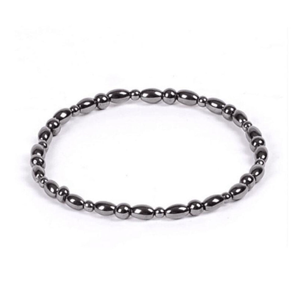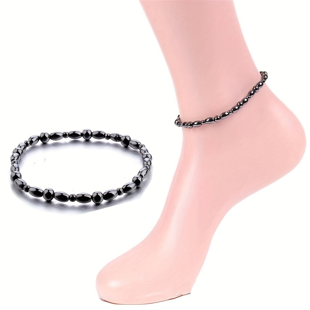 Experience magnetic therapy with this slimming anklet designed with hematite beads. Promotes circulation and may help with pain relief.