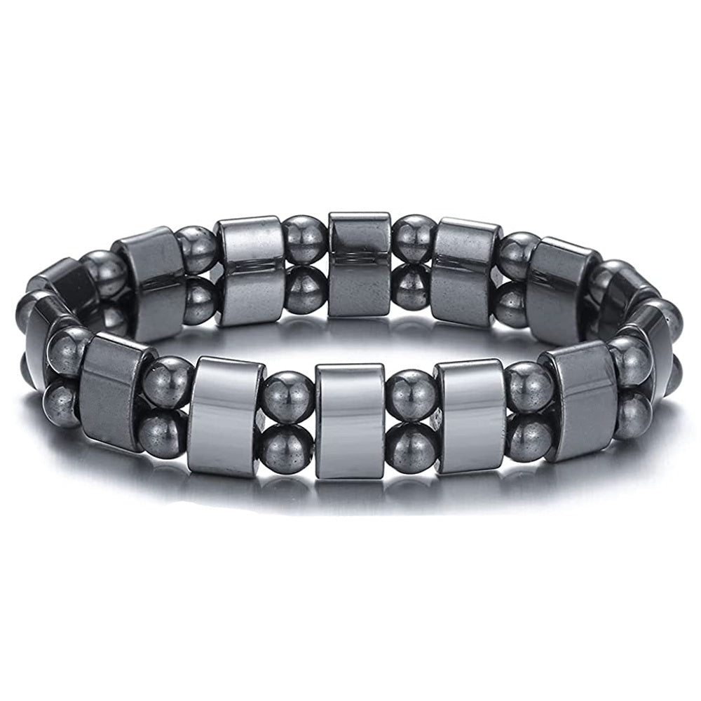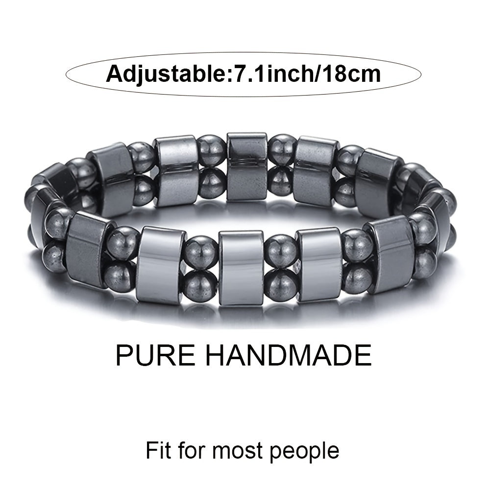 This hematite magnetic bracelet is designed for men and women, featuring reiki properties and magnet therapy to help with arthritis and joint pain.