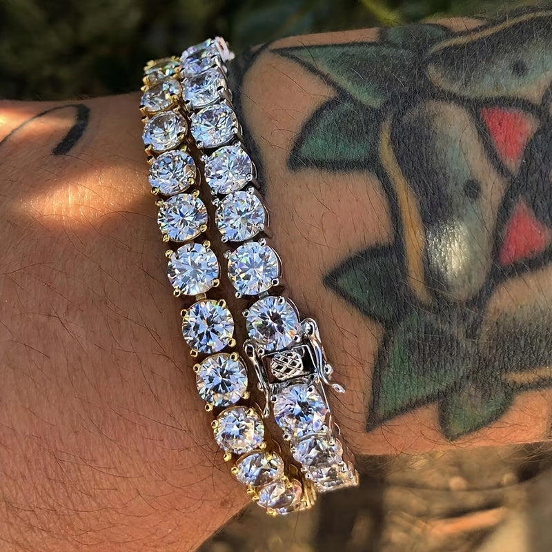 This European and American hip hop bracelet features a stylish design with rhinestones for a dazzling look.
