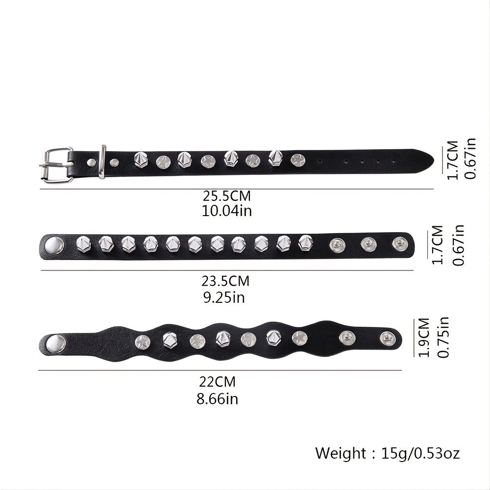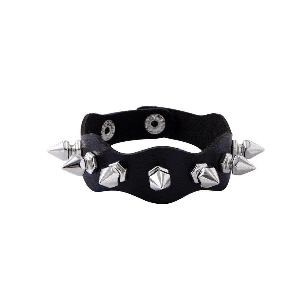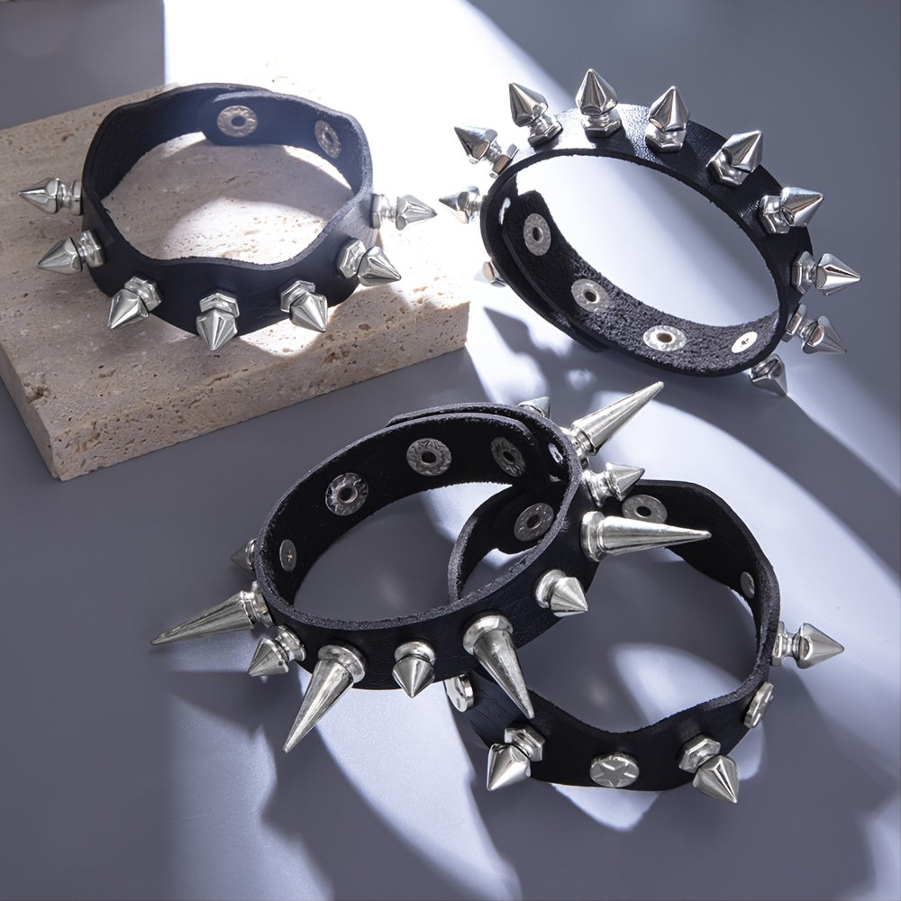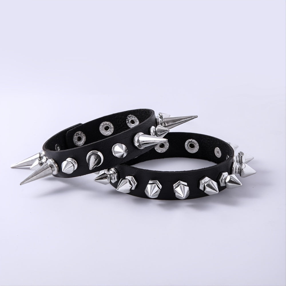 Add a touch of edgy style to your look with this studded PU leather bracelet. Perfect for those who love hip hop, rock, or punk fashion.