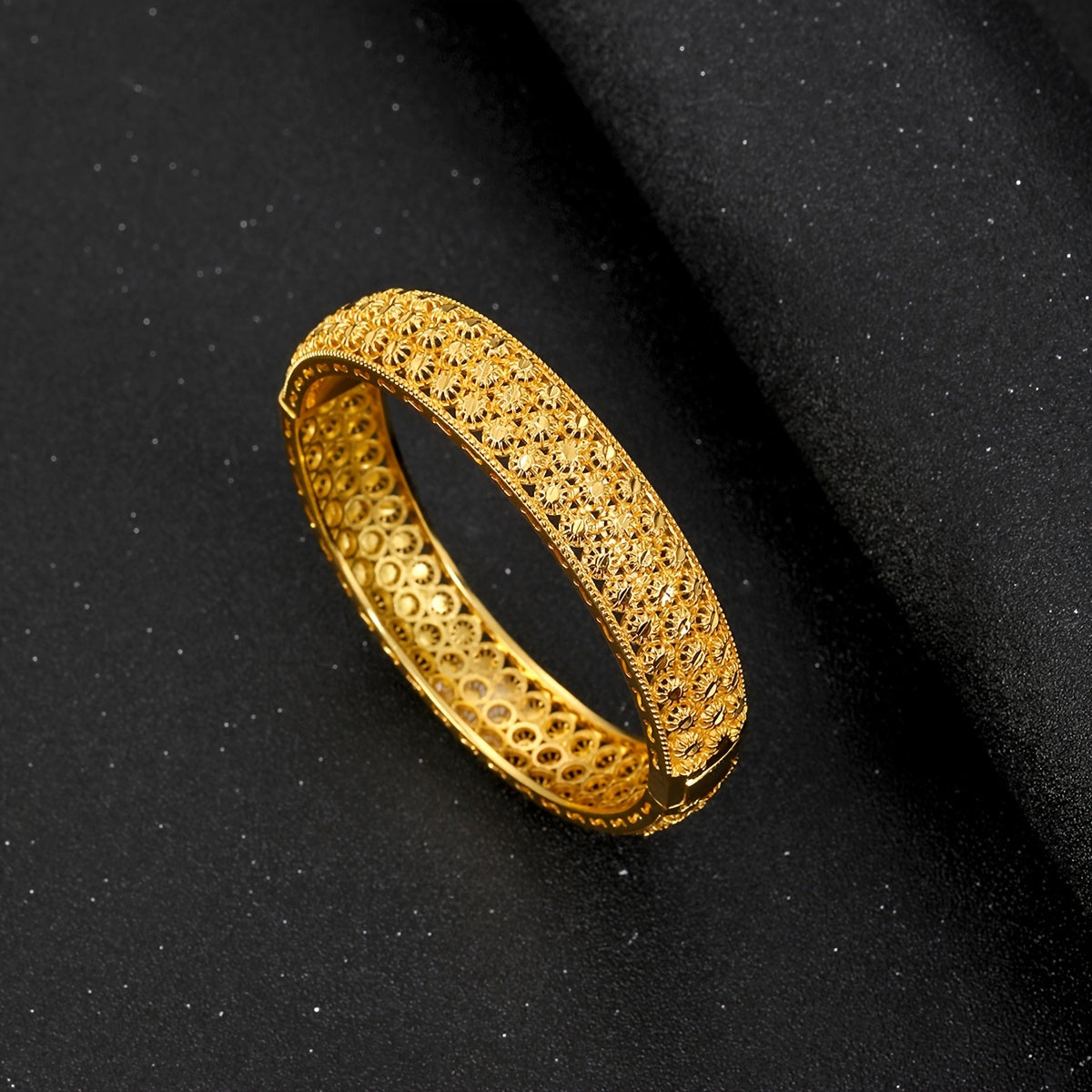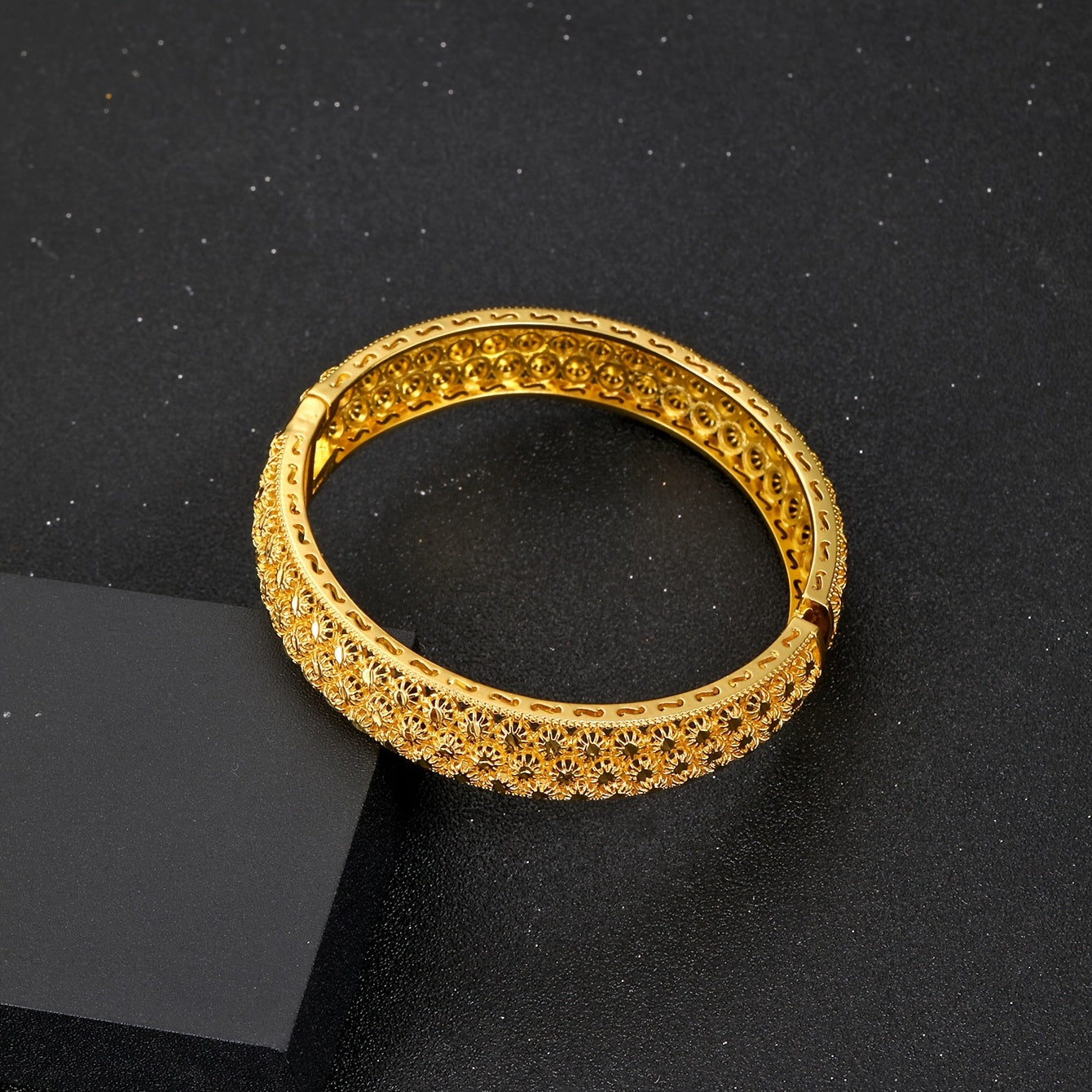This delicate hollow flower bangle bracelet is a perfect accessory for weddings and banquets. It adds a touch of sweetness to your attire.